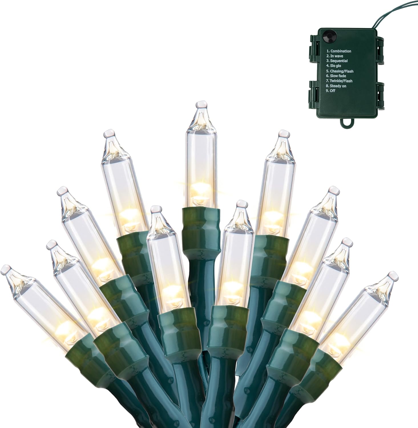 - Ultra-Long 16.7ft Battery Lights with 50 LEDs. Experience magnificent coverage with 50 warm white LED Christmas lights on a 16.7-foot wire, offering ample length to beautifully decorate indoor and outdoor spaces like Christmas trees, gardens, patios, mantels, and windows. The perfect battery-powered string lights for creating a magical holiday atmosphere without needing an outlet.
