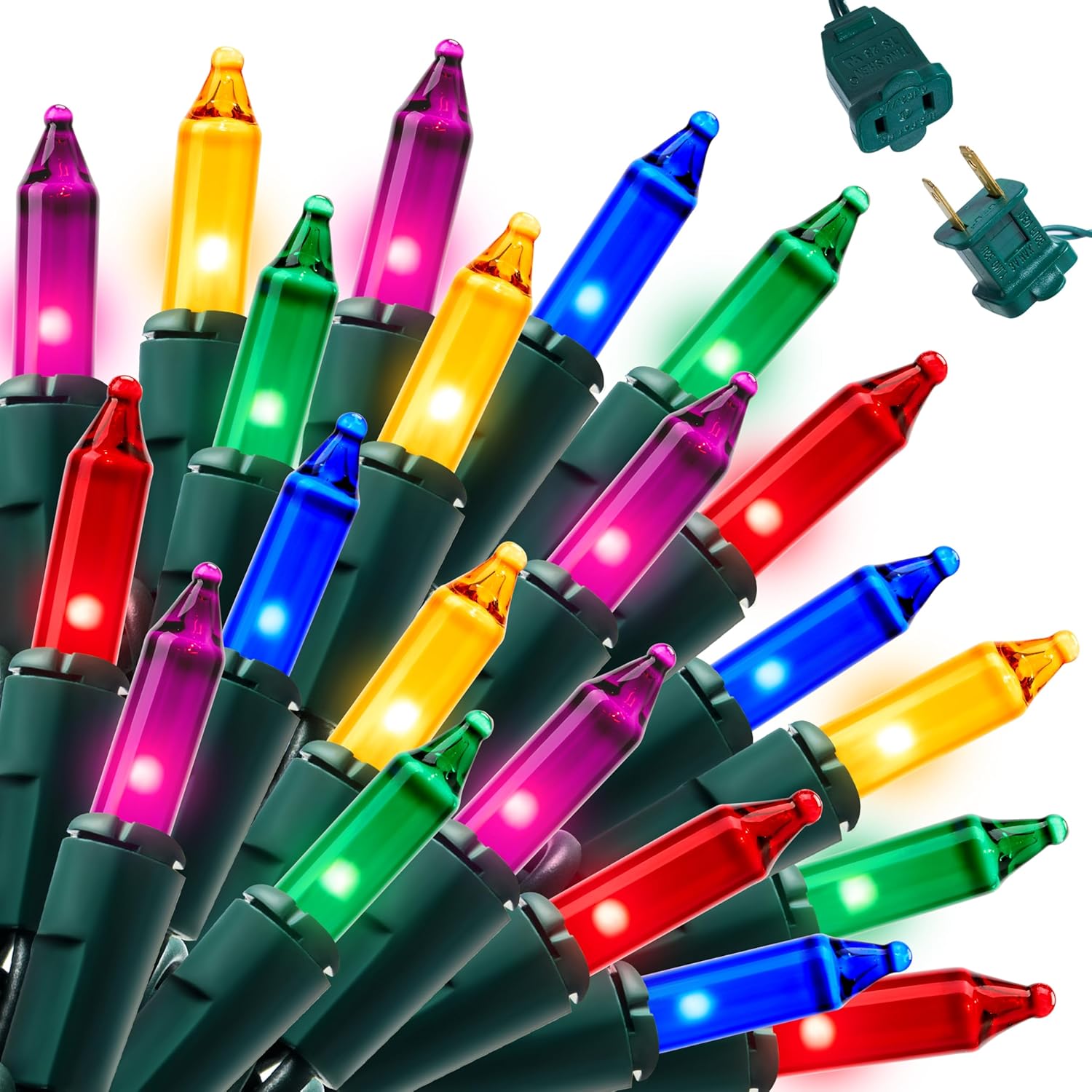 - PREMIUM QUALITY. Our Xmas Multi-color Christmas String Lights are designed with strong durability to accommodate harsh weather conditions. The high efficiency Christmas lights are environment-friendly and save power for you! Includes spare bulbs, flashers, and fuses. If one bulb burns out, the others stay lit.