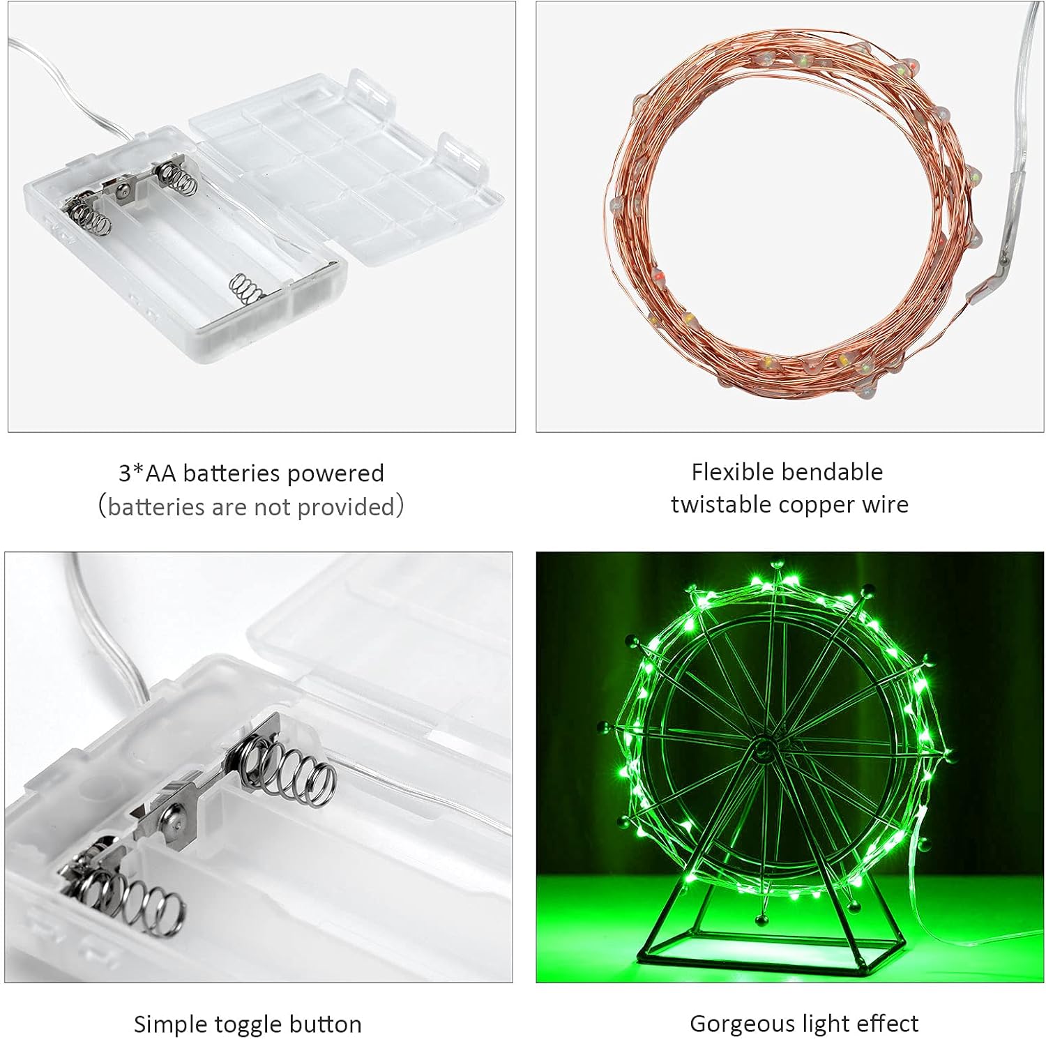 Mini St. Patrick's Day Fairy Lights Battery Operate, 2 Pack Copper Wire 3*AAA Battery Powered Led Starry Fairy String Lights for Bedroom, Christmas, Party, Wedding, Decoration(5m/16ft Green)