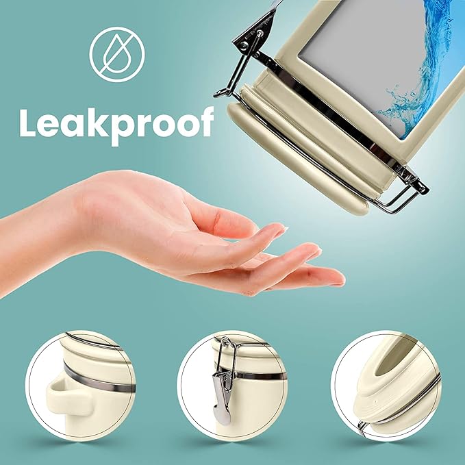 - AIRTIGHT SEAL FOR UNBEATABLE FRESHNESS: Featuring an airtight lid with silicone gaskets and a metal latch for perfect seal, this handy canister set will preserve the flavor of your supplies and keep them fresh and delicious. Perfect for any type of coffee, tea, sugar, flour, salt, candy, spices and so much more. Plus, they are 100% leakproof to prevent any messy spills