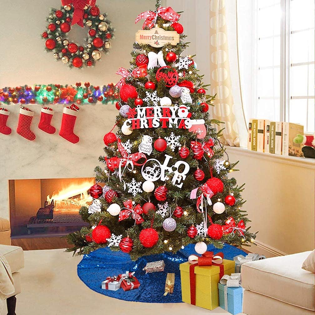 - Sizes: 1 pc 48Inch round sparkly handmade sequin Christmas tree skirt.