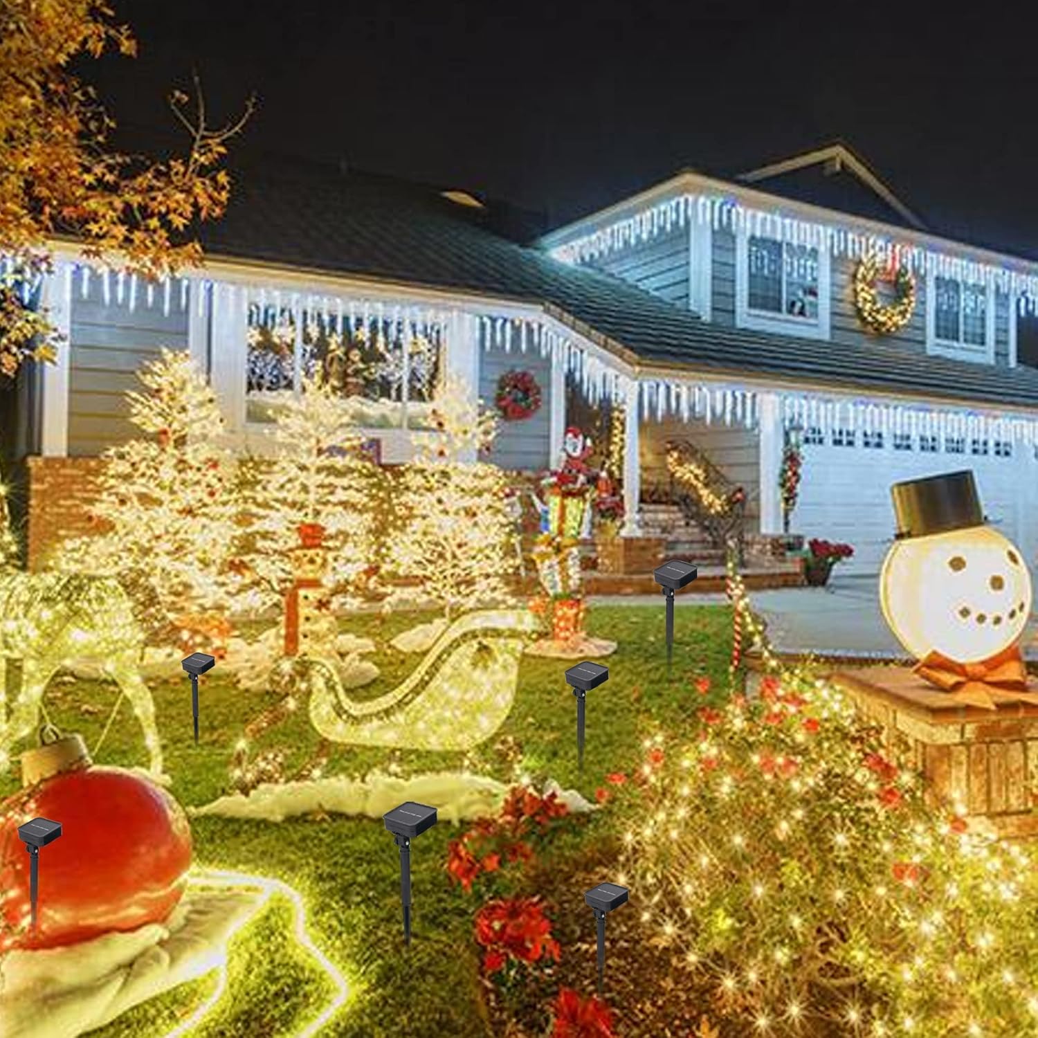 - 'DIY Shape & Widely Application: The silver wire is flexible, you can adjust it to the shape you like. Creating a winter fairy kingdom belong to you with Dazzle Bright fairy lights. Perfect for Xmas Outdoor Indoor Patio, Home, Garden, Lawn, courtyards, stairs, front door, Christmas tree, fence decorations.'