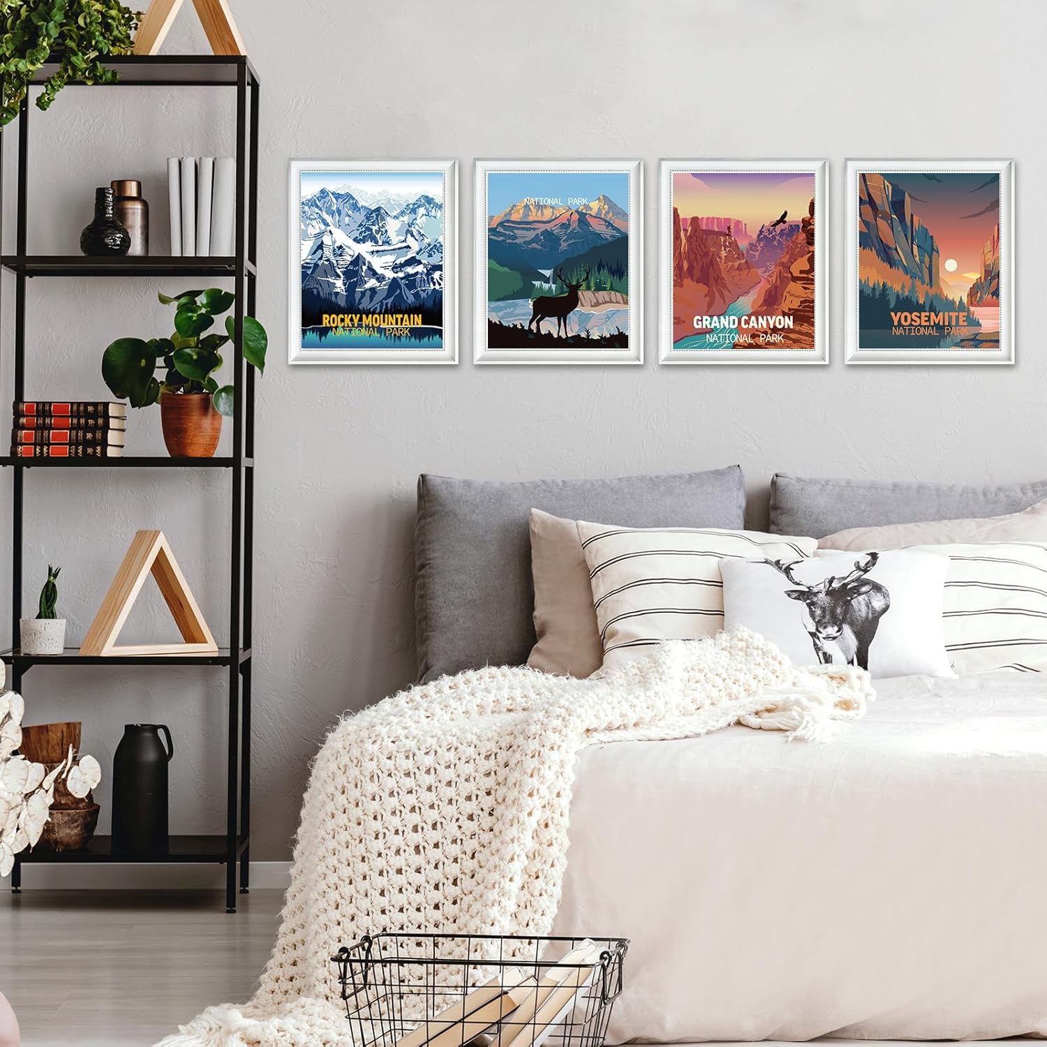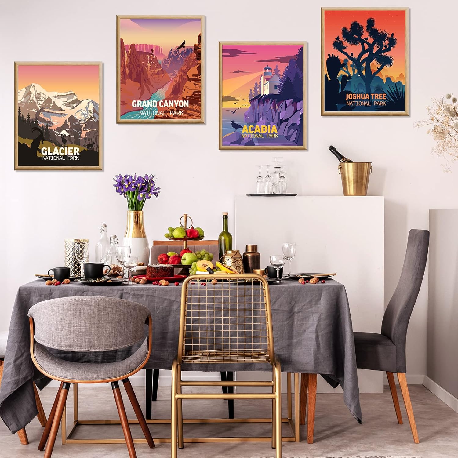 - National park posters design: printed with many national parks as pictures shown, take you to explore a marvelous trip to national, each nature art print give your eyes and mind a space to rest from the monotony of urban life, creating an effortlessly fresh and vintage mix, high definition for home interior decoration gift give kids and friends, which is meaningful and creative
