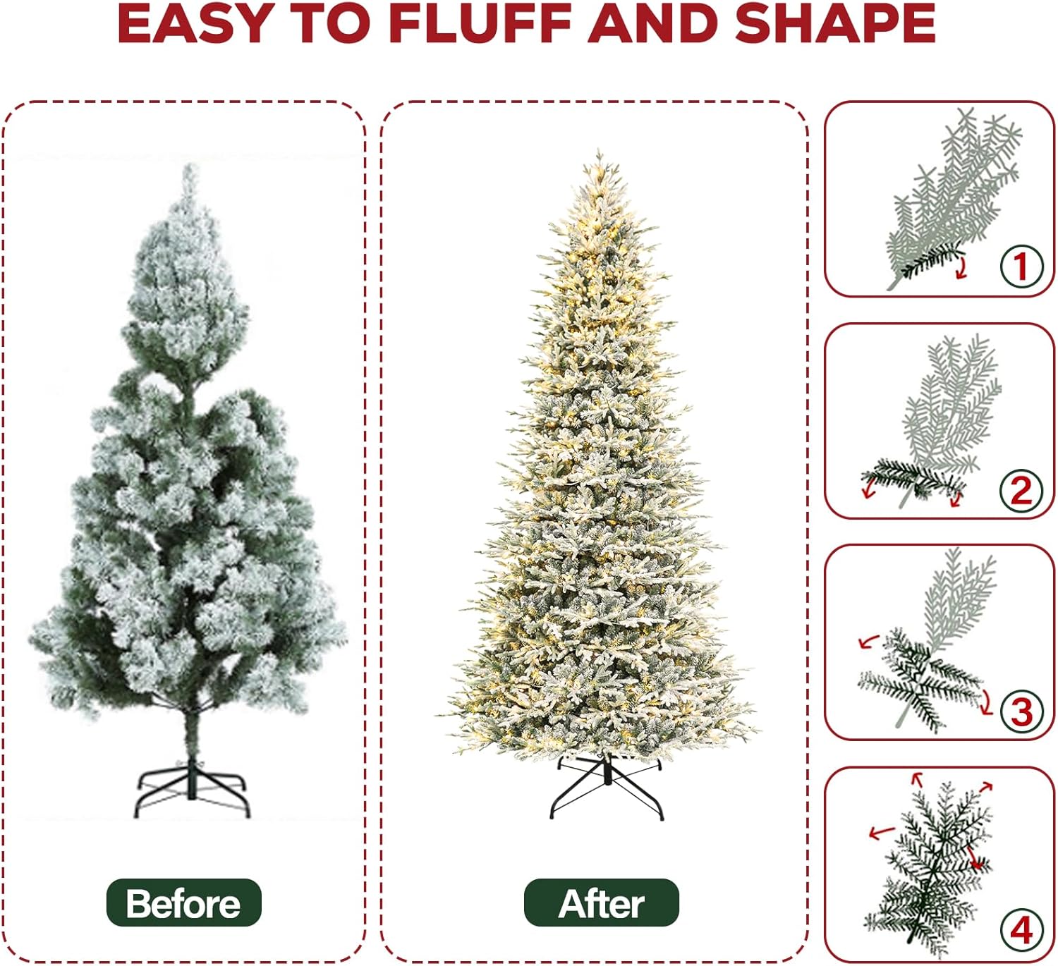 - EASY TO SET UP AND STORE: Our Christmas tree features convenient hinged branches, which allows for ease of assembly and disassembly. All the limbs are hinged around the center pole, the branches easily fall into place during set-up and fold back up for storage.