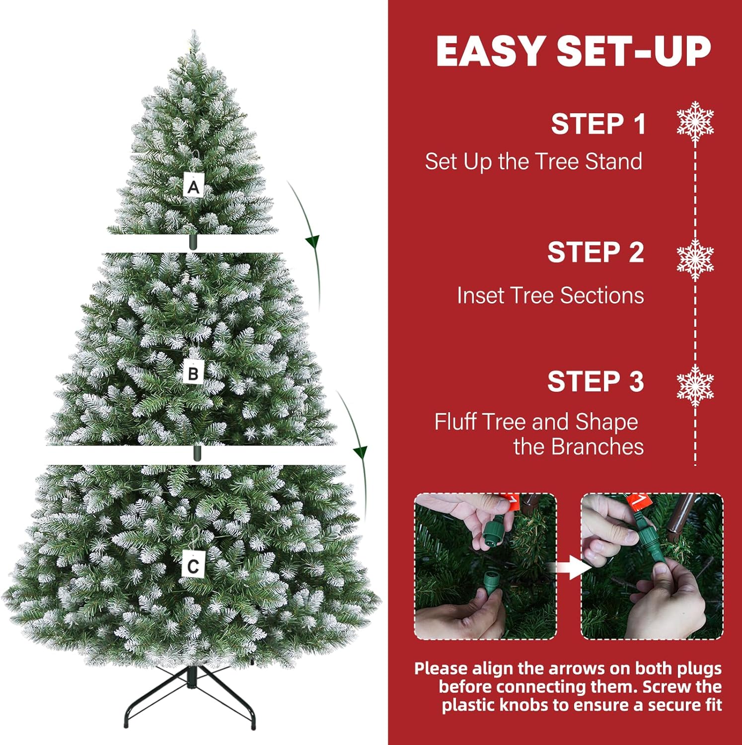 - EASY TO SET UP AND STORE: Featuring all hinged construction, the 6 ft Christmas tree is convenient for assembly and storage. It is easy to assemble in 3 steps: insert the largest section of the tree into the stand before attaching the remaining sections and easily fluffing out and shaping the branches.