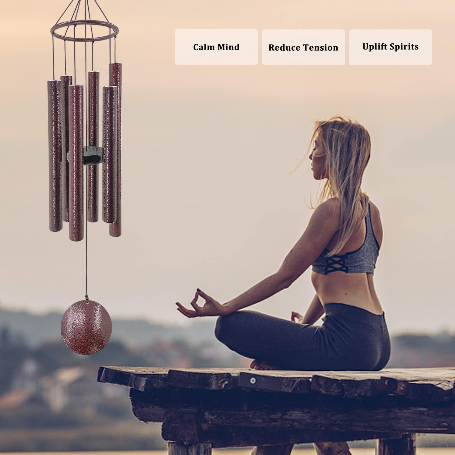 - 36 inch Metal Wind Chimes -Metal wind chimes are more popular due to durability and high tuning accuracy,Total hanging overall length is 36 inches(S hook to windcatcher) with a stronger metal S hook.Featuring a beautiful purple powder coat finish,6 metal pipes of different lengths. which is thicker and longer than normal tubes and heavy duty nylon cording high density striker to ensure the depth of tone and sound transmission.