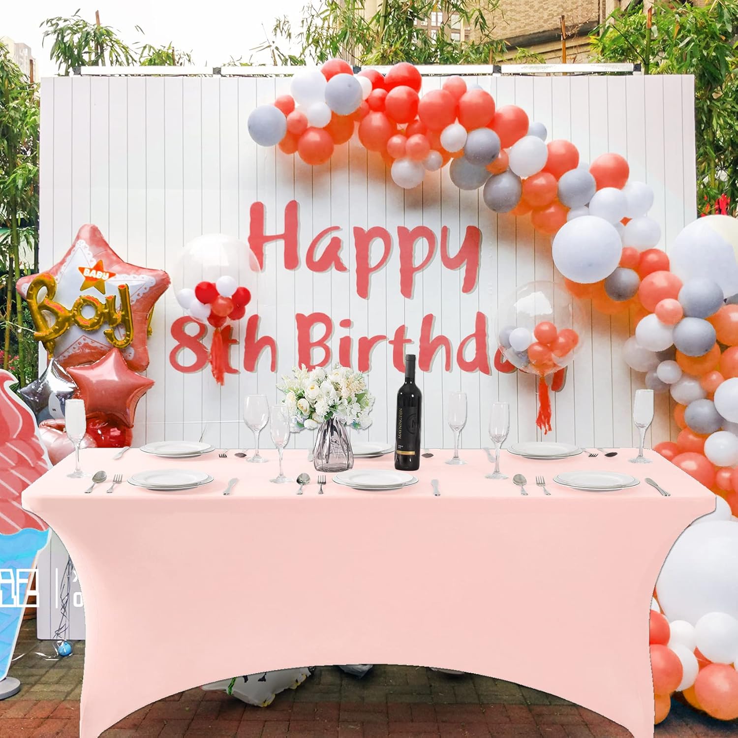 SuperO Waterproof Spandex Table Cover for 4FT Table Universal Fitted Stretch Tablecloth for Party, Banquet, Wedding and Events-Blush Pink