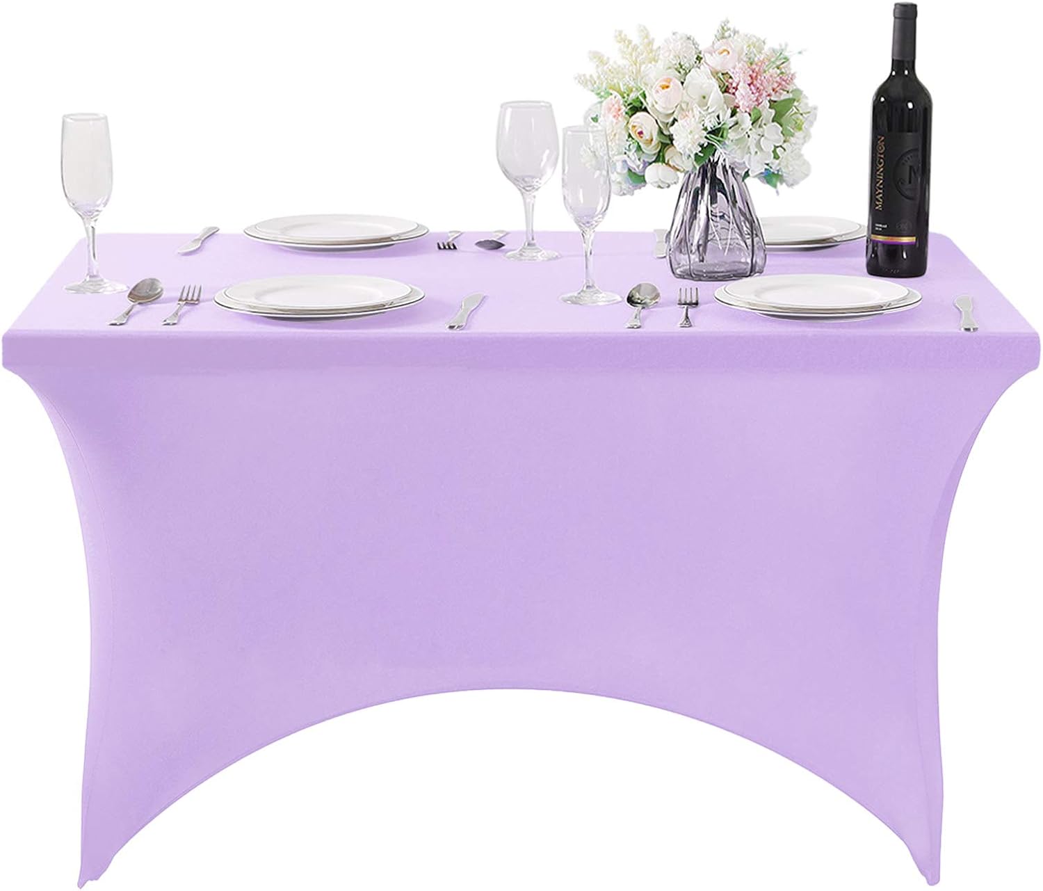 SuperO Waterproof Spandex Table Cover for 4FT Table Universal Fitted Stretch Tablecloth for Party, Banquet, Wedding and Events-Lavender