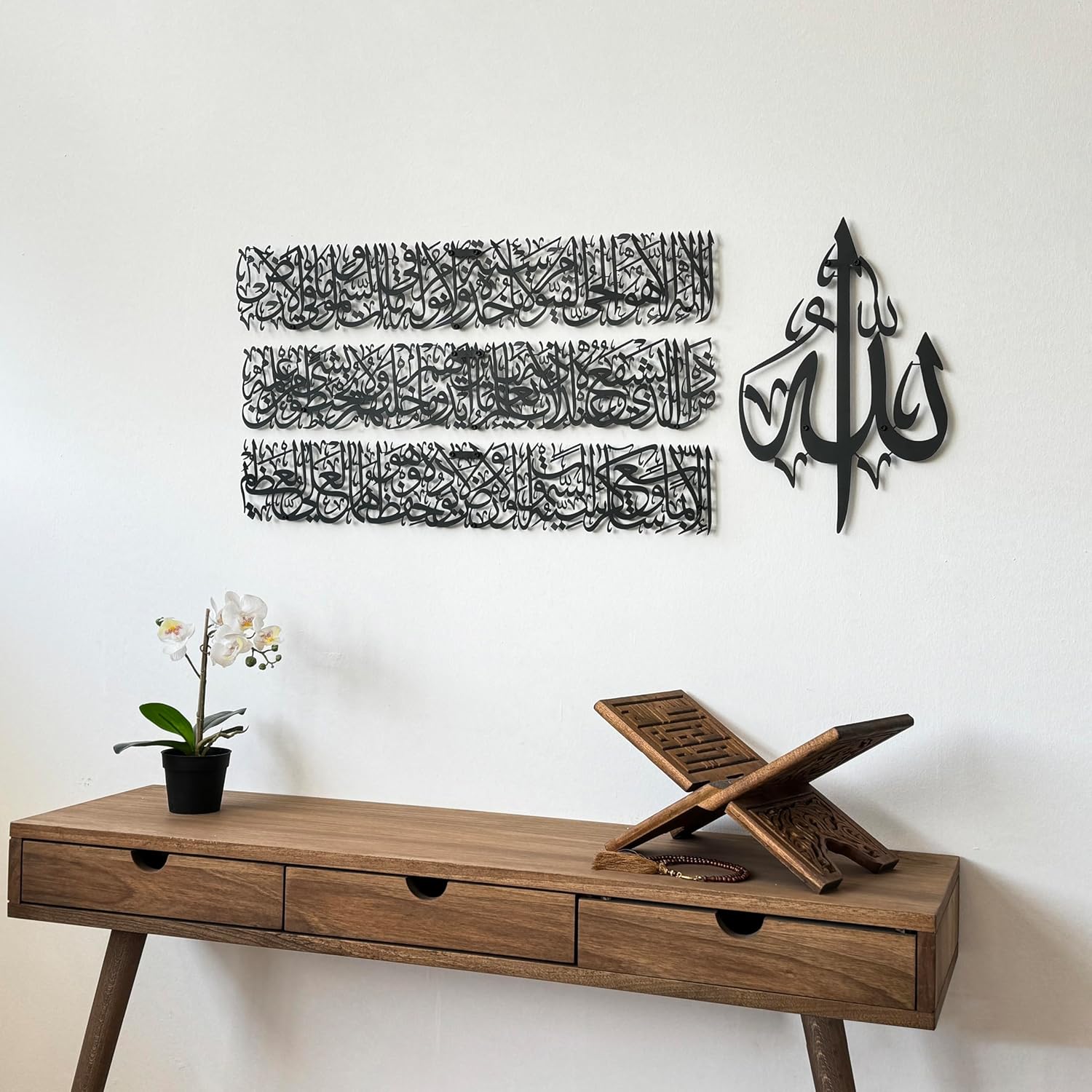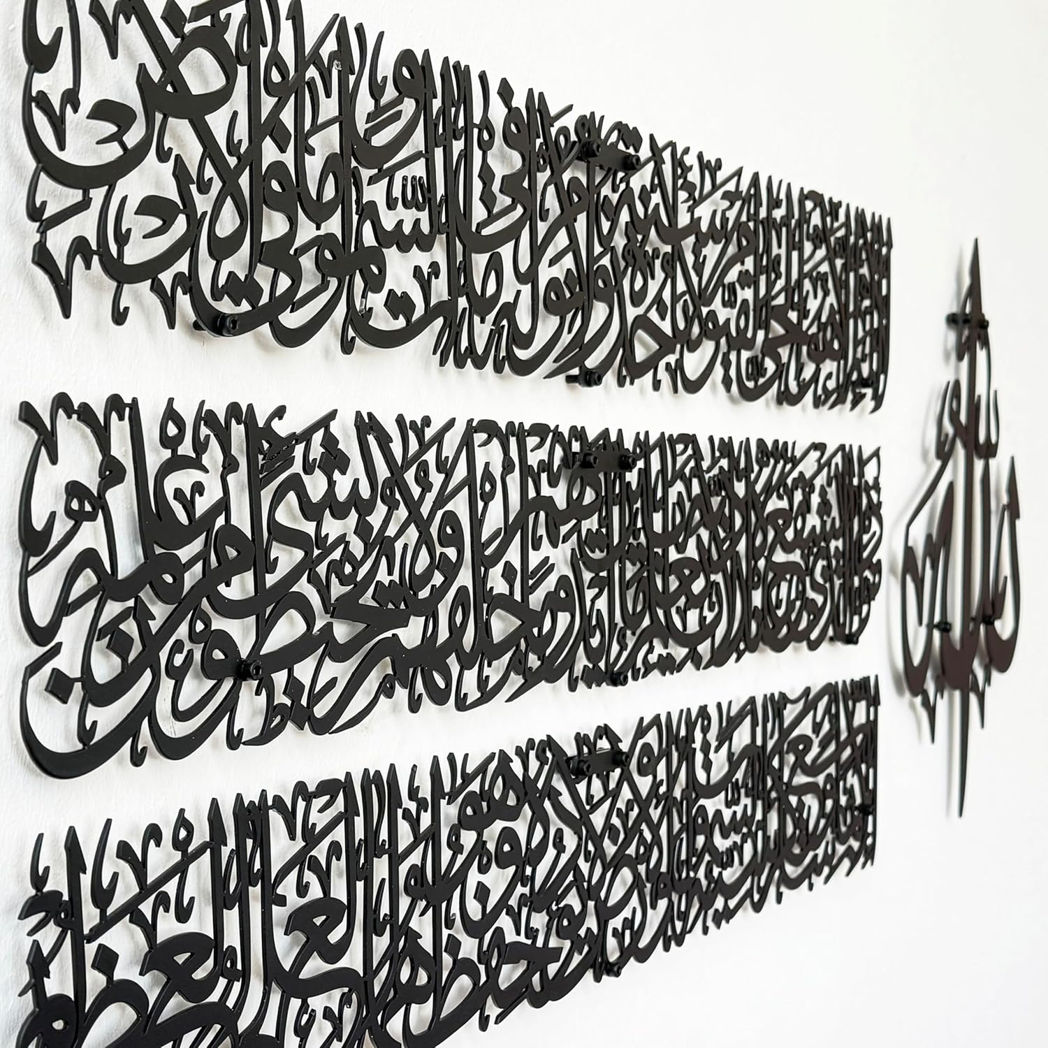 Modern Islamic Wall Art, Ayatul Kursi Metal Artwork, Perfect for Ramadan Decorations, Muslim Housewarming Gifts, Arabic Calligraphy Throne Verse Wall Decor, Ideal Eid Decor (Large, Matte Black)