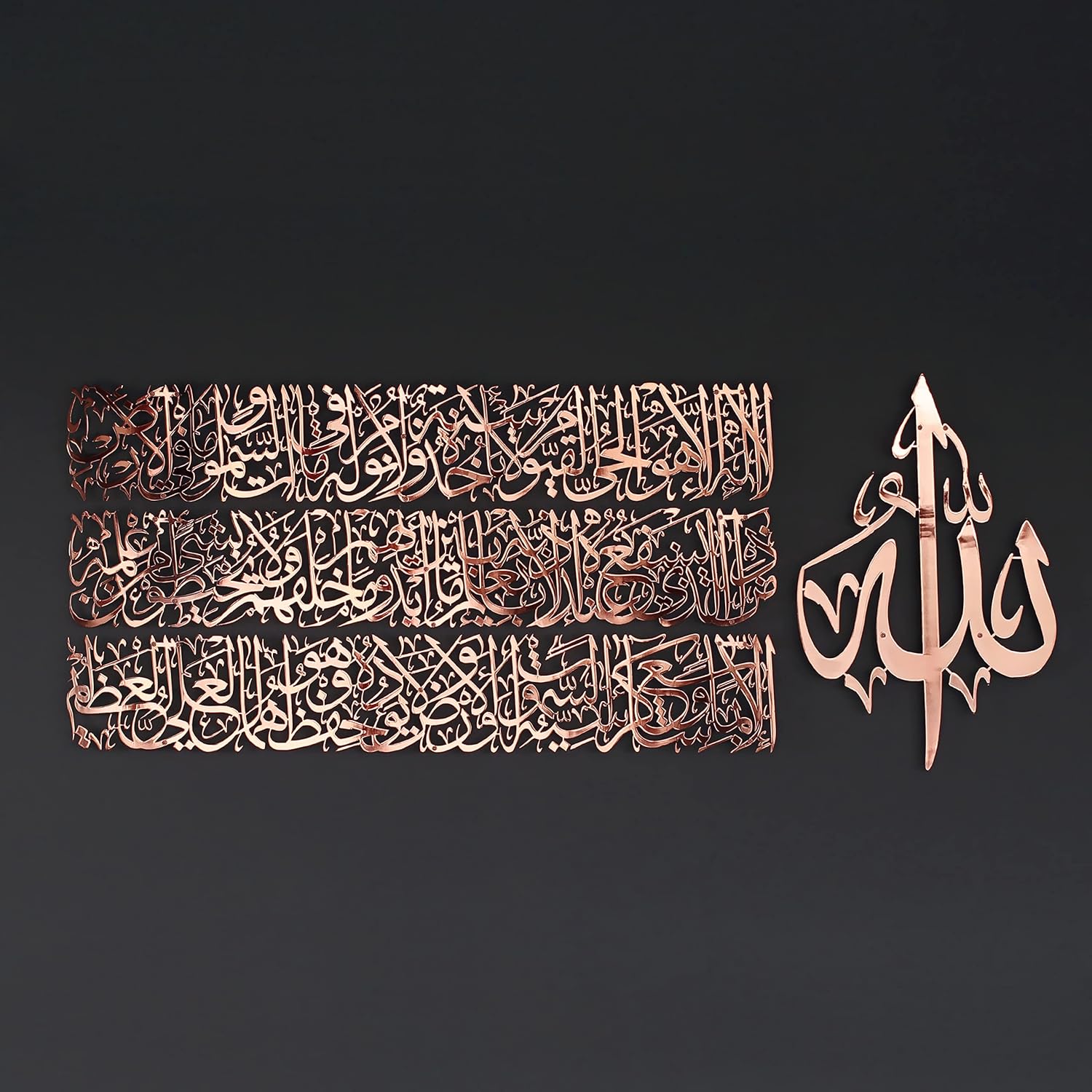 Modern Islamic Wall Art, Ayatul Kursi Metal Artwork, Perfect for Ramadan Decorations, Muslim Housewarming Gifts, Arabic Calligraphy Throne Verse Wall Decor, Ideal Eid Decor (Large, Shiny Copper)