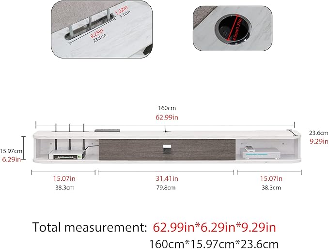 - 【Make your Room Tidy】Equipped with cable hole for hiding set-top box antenna, the floating tv console helps to keep all items in order and easy to get, and keep your items clean and tidy. Contemporary TV wall lamp with creative design is the perfect solution to save home space and optimize space usage.