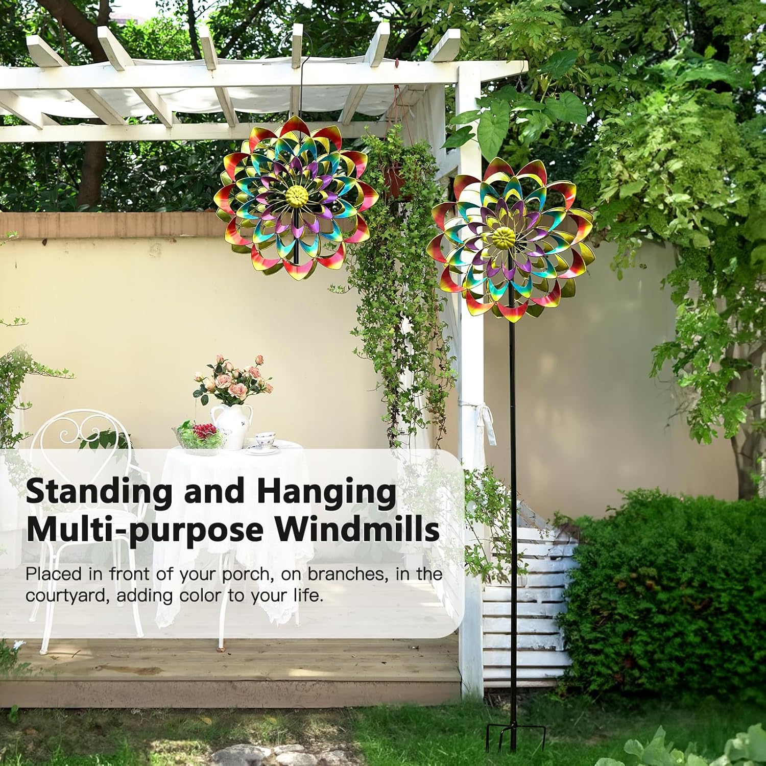 - Spinning in the Yard: It's unique design and graceful rotation create a sense of tranquility and comfort when the breeze flows through. Colorful Garden Wind Spinner making the entire yard more lively and engaging
