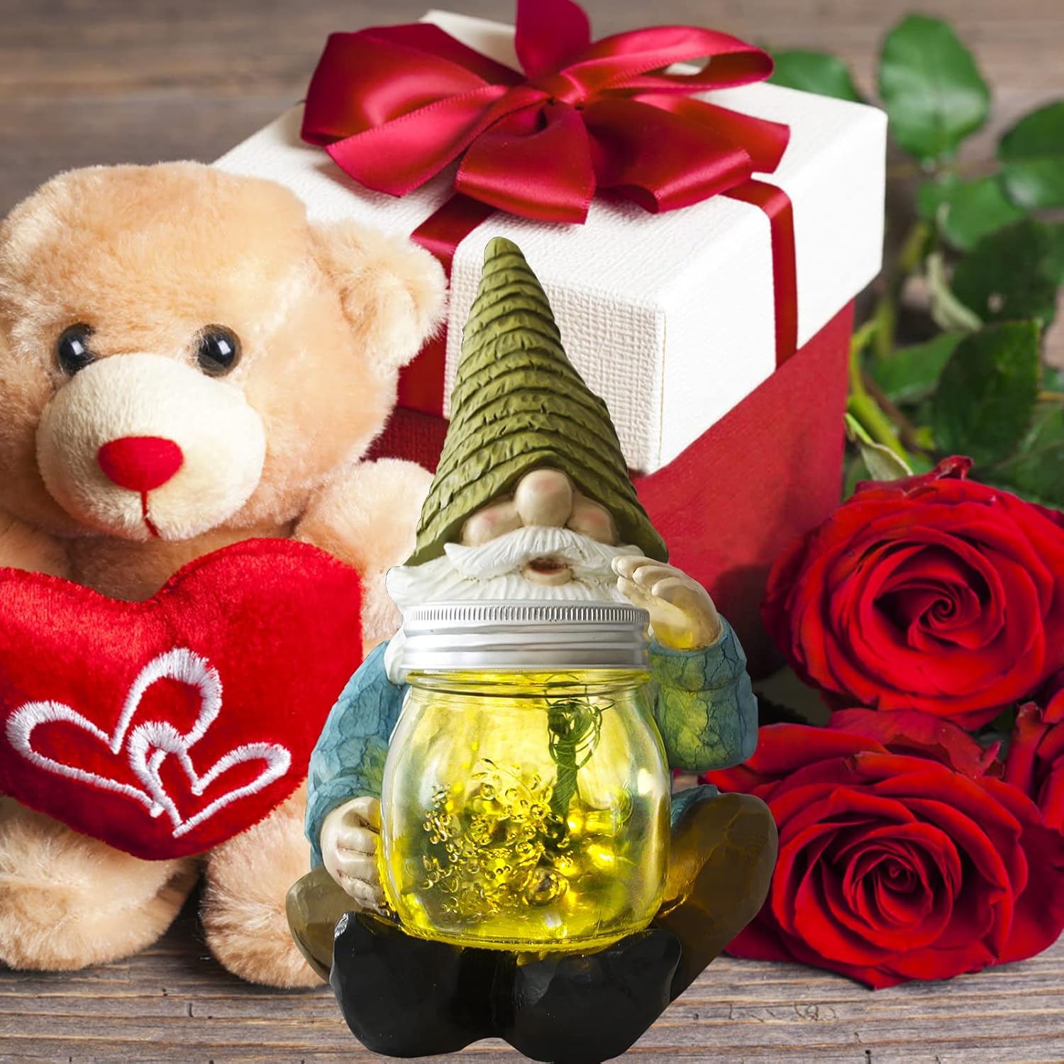 - Firefly Jar Garden Gnome Decor : The funny solar elf resin statue holding a mason jar which contain glowing fireflies, these fireflies are vivid and realistic firefly shaped led bulbs with yellower-green lights, when the lights light up at night, it brings you back to your childhood, records your memories of chasing fireflies