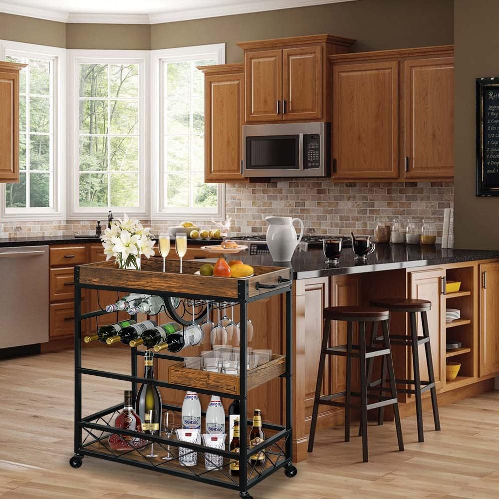 - 【Easy to Assemble and Reliable Service】You can assemble this mini bar cart easily following the detailed instruction; all screws can be threaded in open space; you can get our customer service within 24 hours at any time