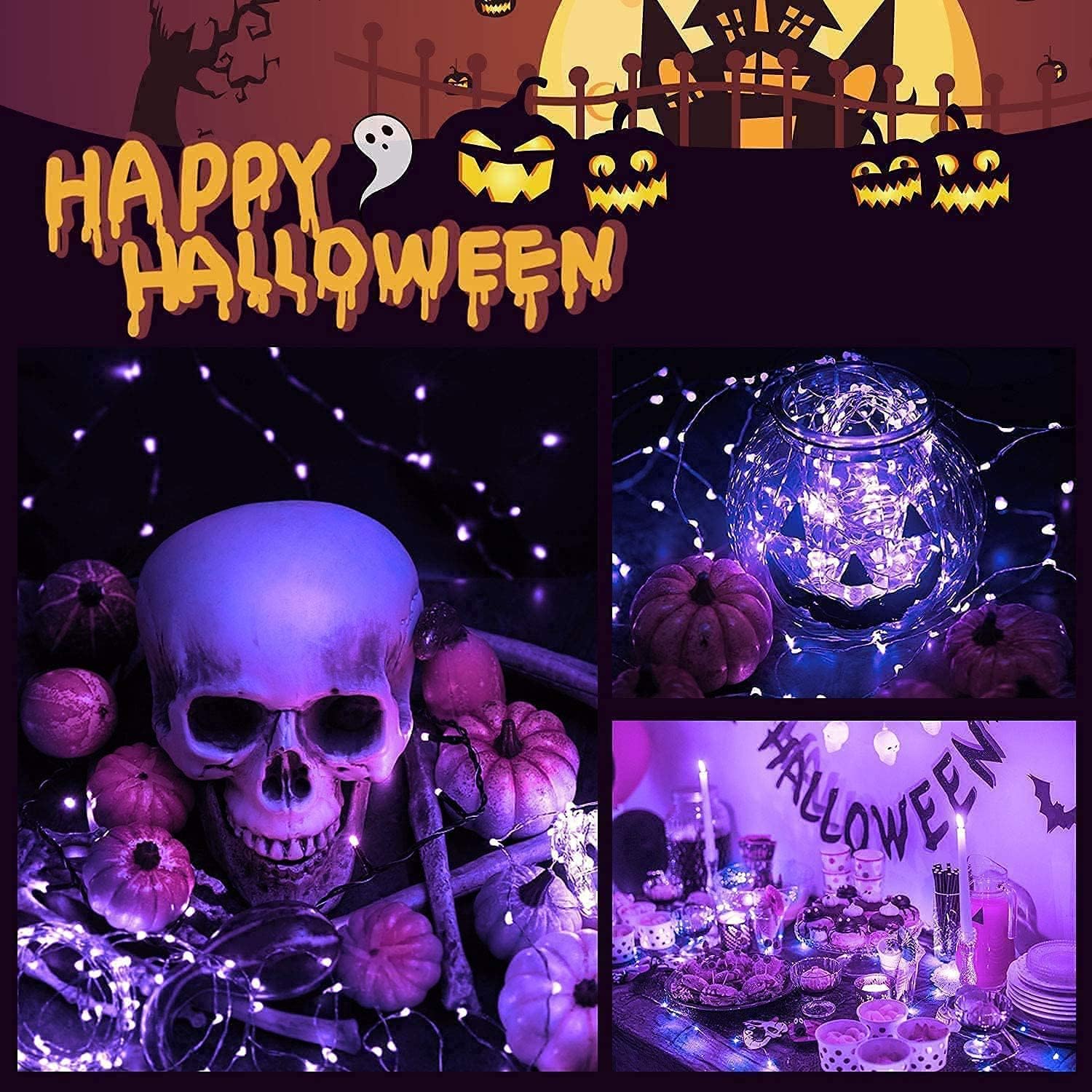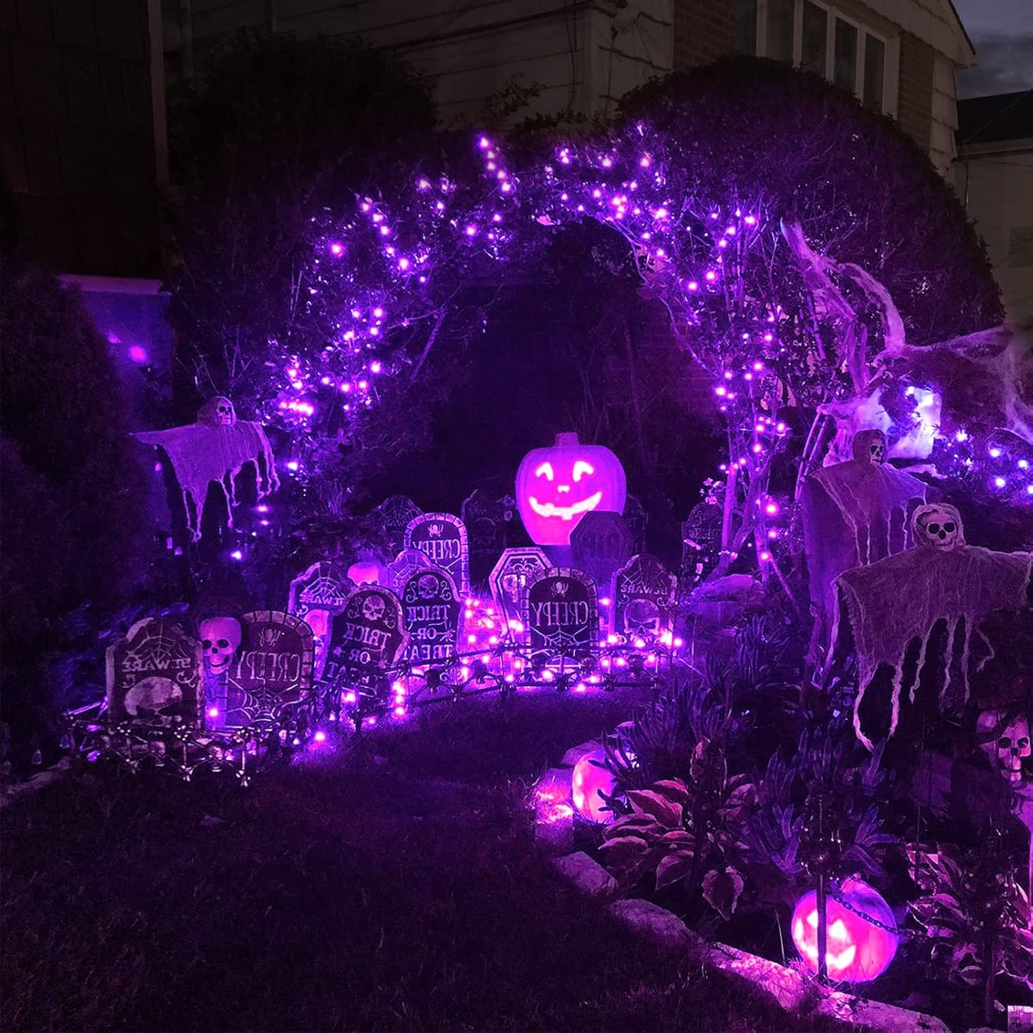 - 【Any Weather Suitable & Safety】When you are celebrating holiday outdoors, it would be terrible if the lights were extinguished by a sudden rainstorm. Fortunately, our purple Halloween lights outdoor are IP65 waterproof, so don't be anxious about rain interrupting your recreation. Besides, insulated copper wires keeps the lights cool for safety.