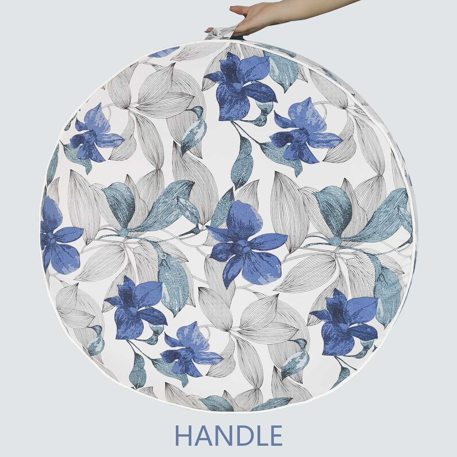 LVTXIII Outdoor/Indoor Inflatable Ottoman, All Weather Round Footrest Stool with Handle D31”x H14”, Portable Pouf for Patio Garden Camping or Home Decoration, Clemens Noir Blue