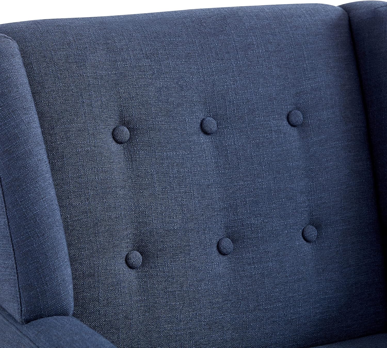 HUIMO Accent Chair Living Room Chair, Upholstered Button Tufted Armchair, Linen Fabric Sofa Chairs for Bedroom, Living Room, Mid Century Modern Comfy Reading Chair (Dark Blue)