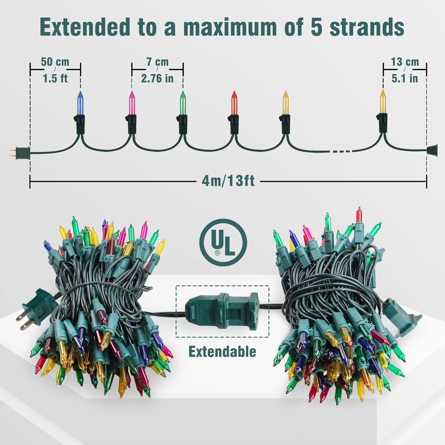 Hopolon Christmas Lights Multicolor,2PACK 13 Feet 50Count Incandescent Christmas Tree Lights with Green Wire,Connectable Mini Lights Set for Indoor,Outdoor,Holiday,Home,Party,Xmas,Easter,Multicolor