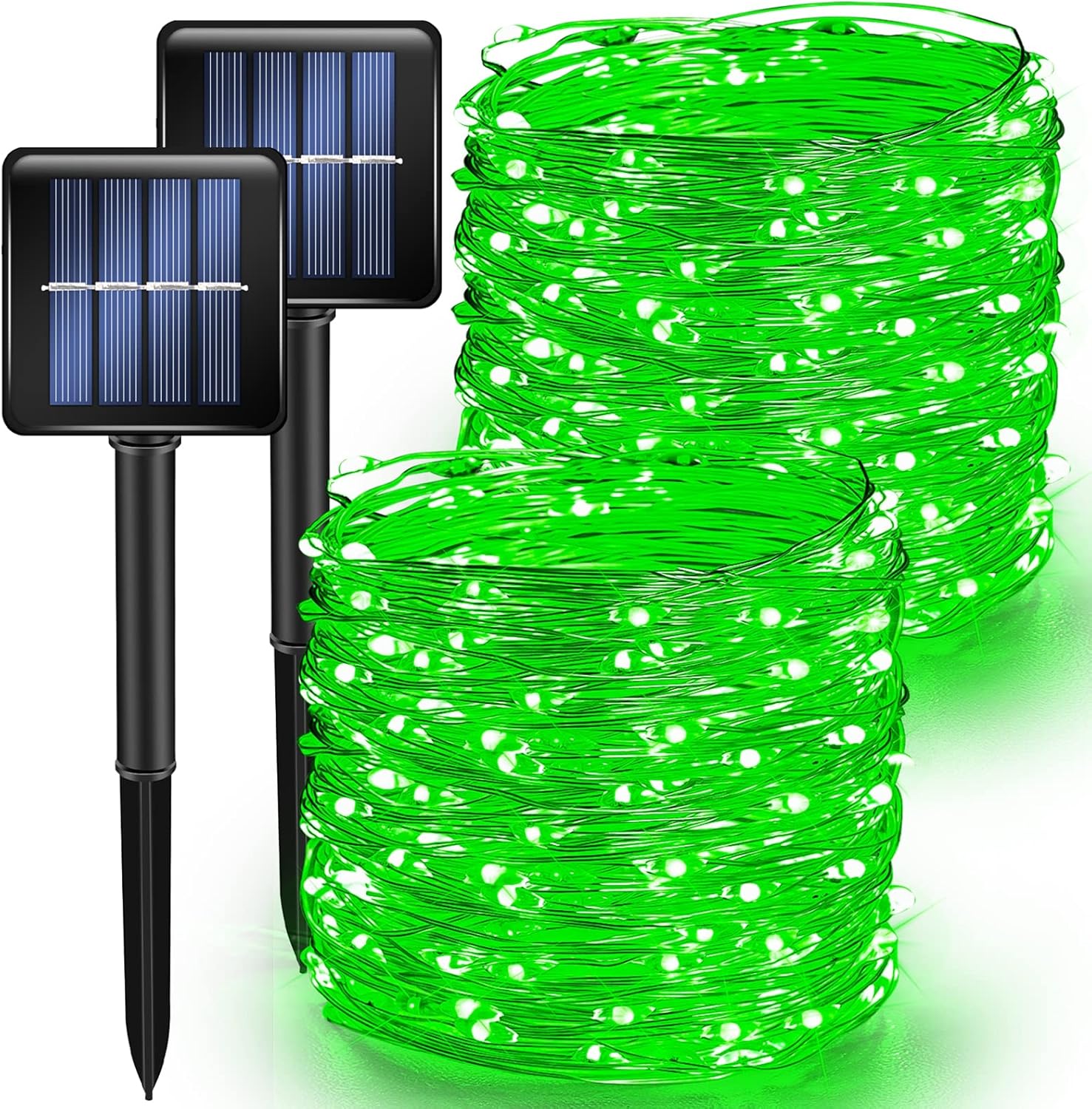 TW SHINE Green Solar String Lights Outdoor, Total 80 FT 240 LED Solar Powered Waterproof Fairy Lights 8 Modes Copper Wire Christmas St. Patrick's Day Party Tree Wedding Yard Decorations, 2 Pack