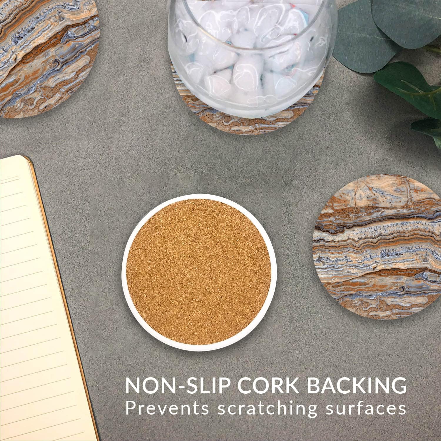Emerson Coasters for Drinks Absorbent – Natural Stone Drink Coasters Set with Holder, Coasters for Coffee Table, Wooden Tabletop Protection Marble Style – 100% Heavy Duty Set of 6 (Terra)