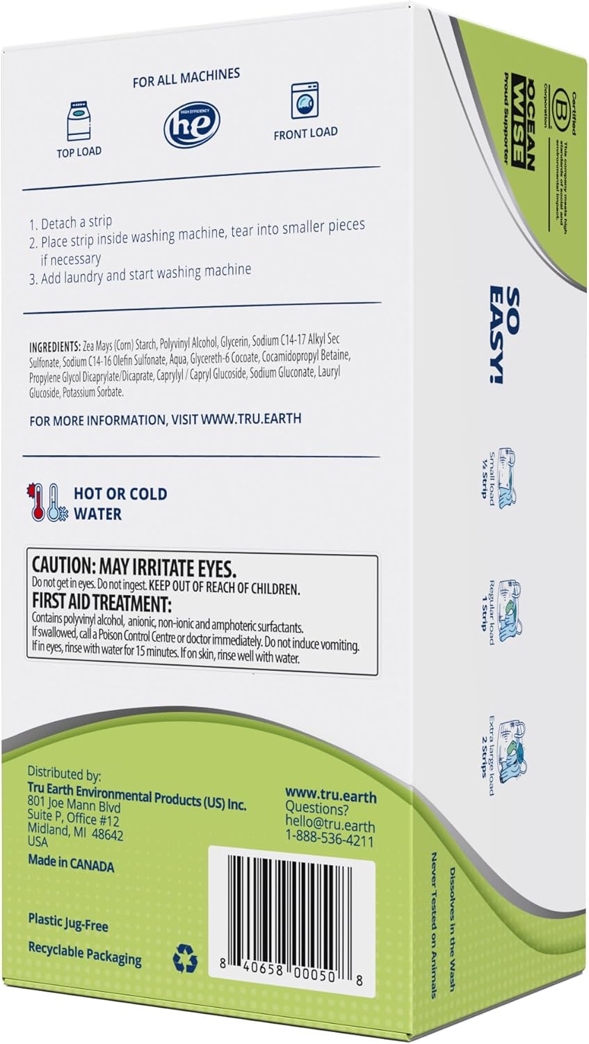 - NO MEASURING, NO MESS: Let’s face it. Traditional liquid laundry detergent can sometimes be messy, and takes up space. Measuring out detergent whether it is liquid or powder can result in spillage. With Tru Earth sheet laundry detergent, 1 strip equals 1 load - no measuring and nothing to spill.