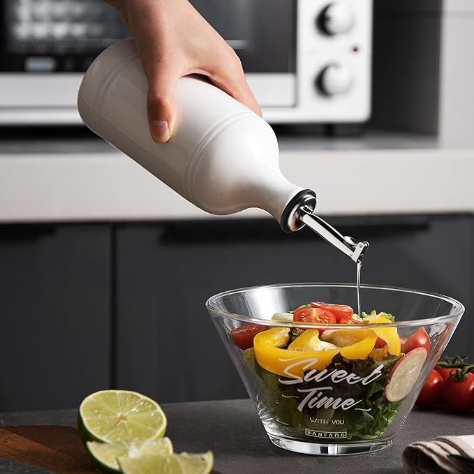 - Leak Proof & Keep Liquid Fresh - The bottle is made of durable ceramic that creates a smooth glaze. And the opaque porcelain bottle protects the oil from light and makes it last longer.