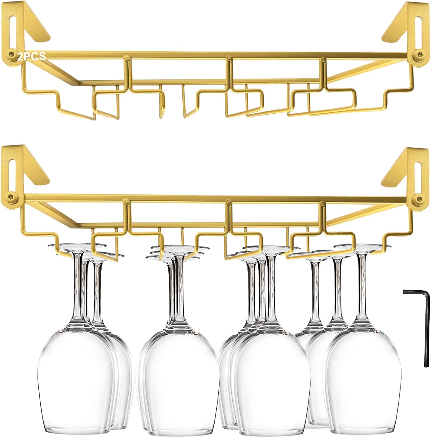 - 【Space Saving】Compact wine glass rack can be hang under any kitchen cabinets, save so space while displaying your glasses! Adds elegance taste to your home or bar's decor, as well as a best gift for wine lovers.