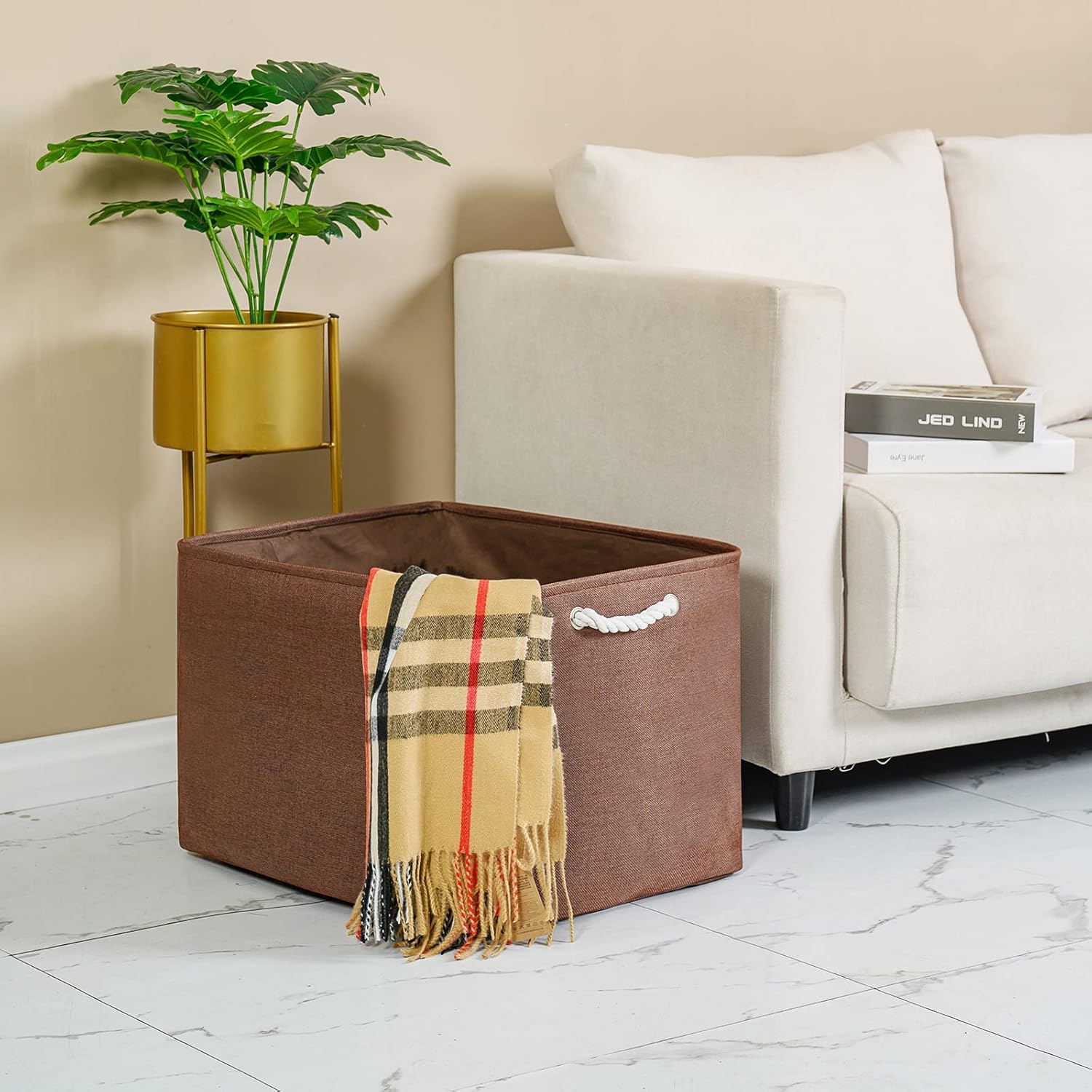 TheWarmHome Organization and Storage for Organizing - Extra Jumbo 3 Pack 20.5x15.7x13.8 inch Fabric Storage Bin for Shelves, Storage cubes for Decorative Shoes Towel Blanket Closet (Brown)