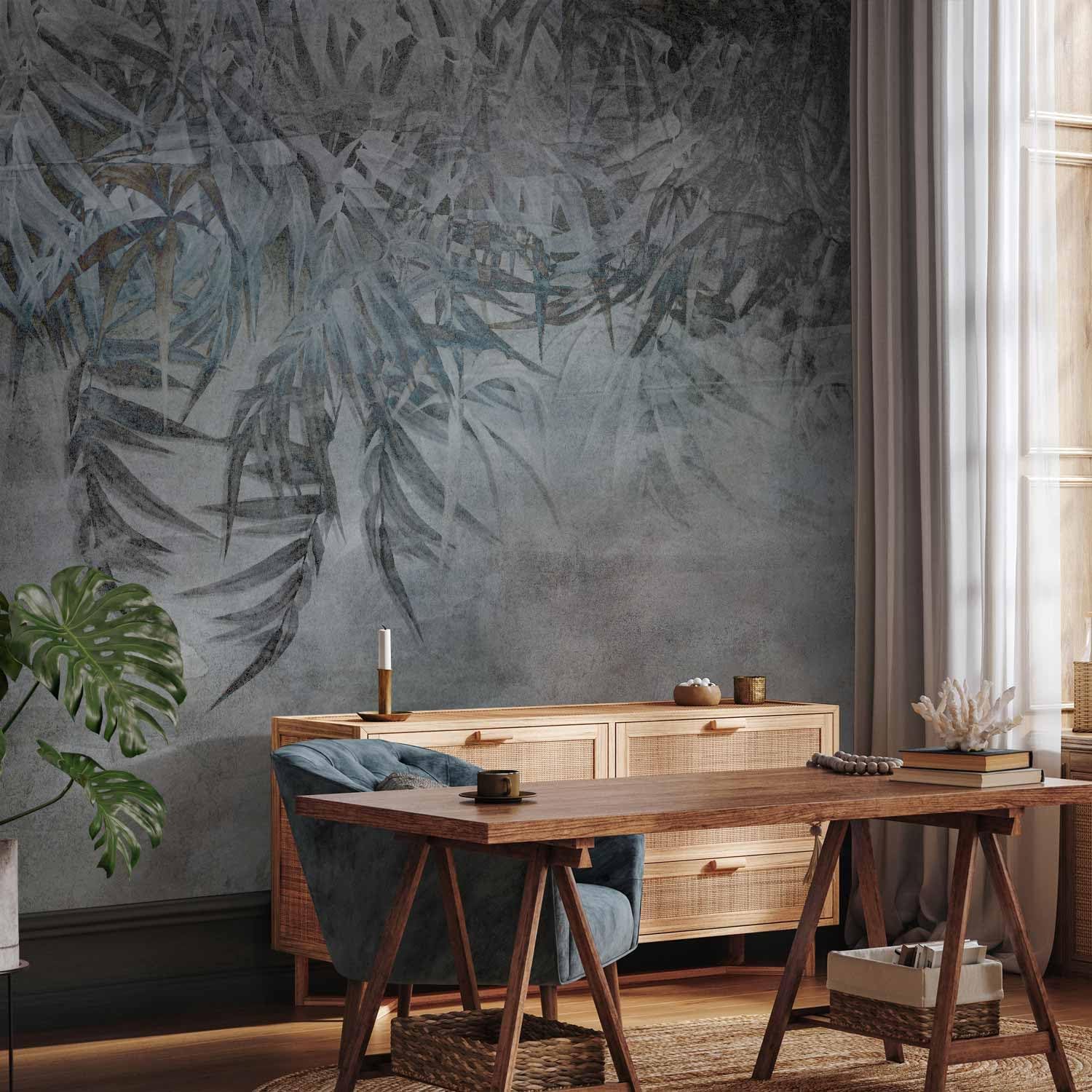 artgeist Wall Mural Leaves 96x69 in - XXL Peel and Stick Self-Adhesive Wallpaper Removable Large Sticker Foil Wall Decor Print Picture Image Design Palm Leaves Concrete Nature Grey b-C-10103-a-a