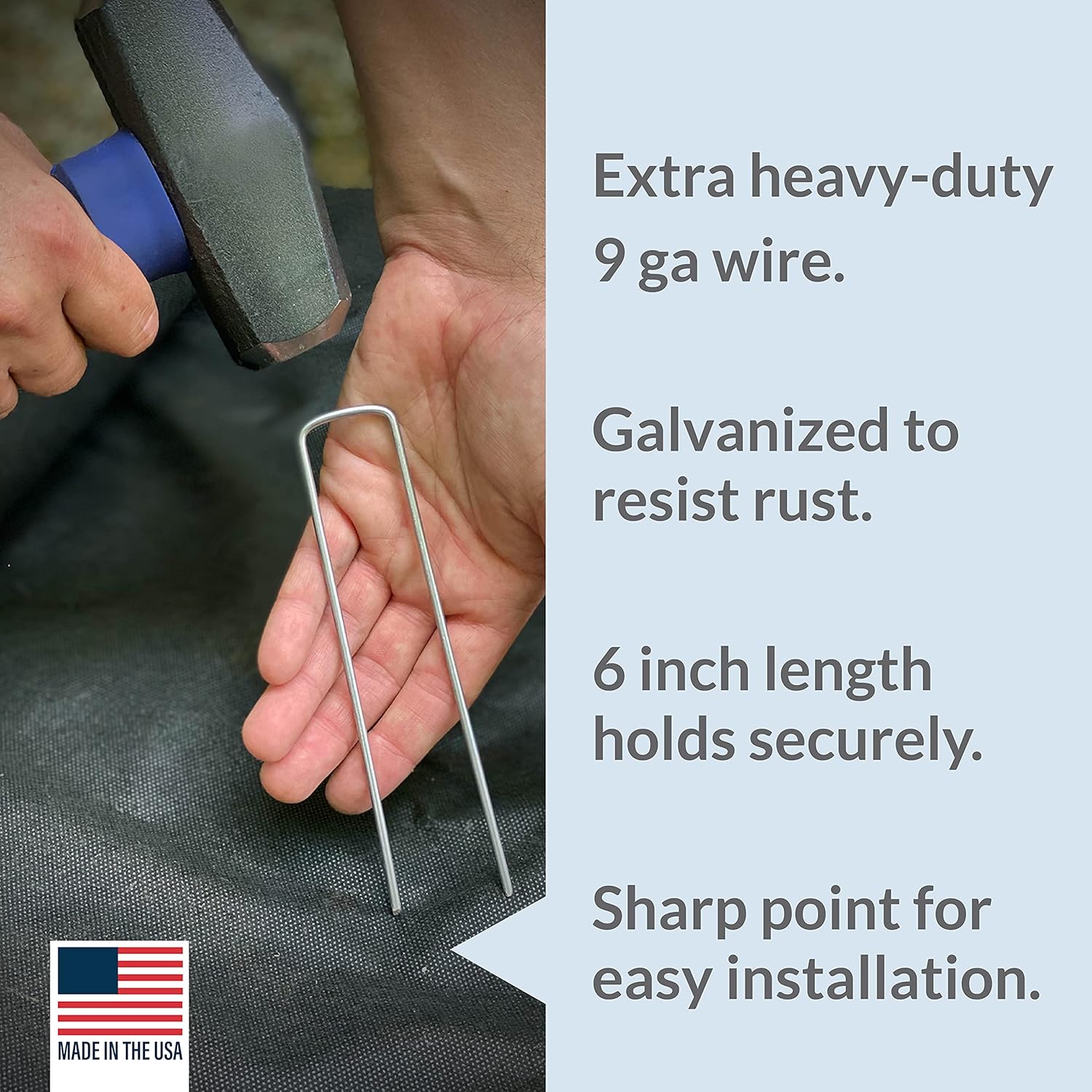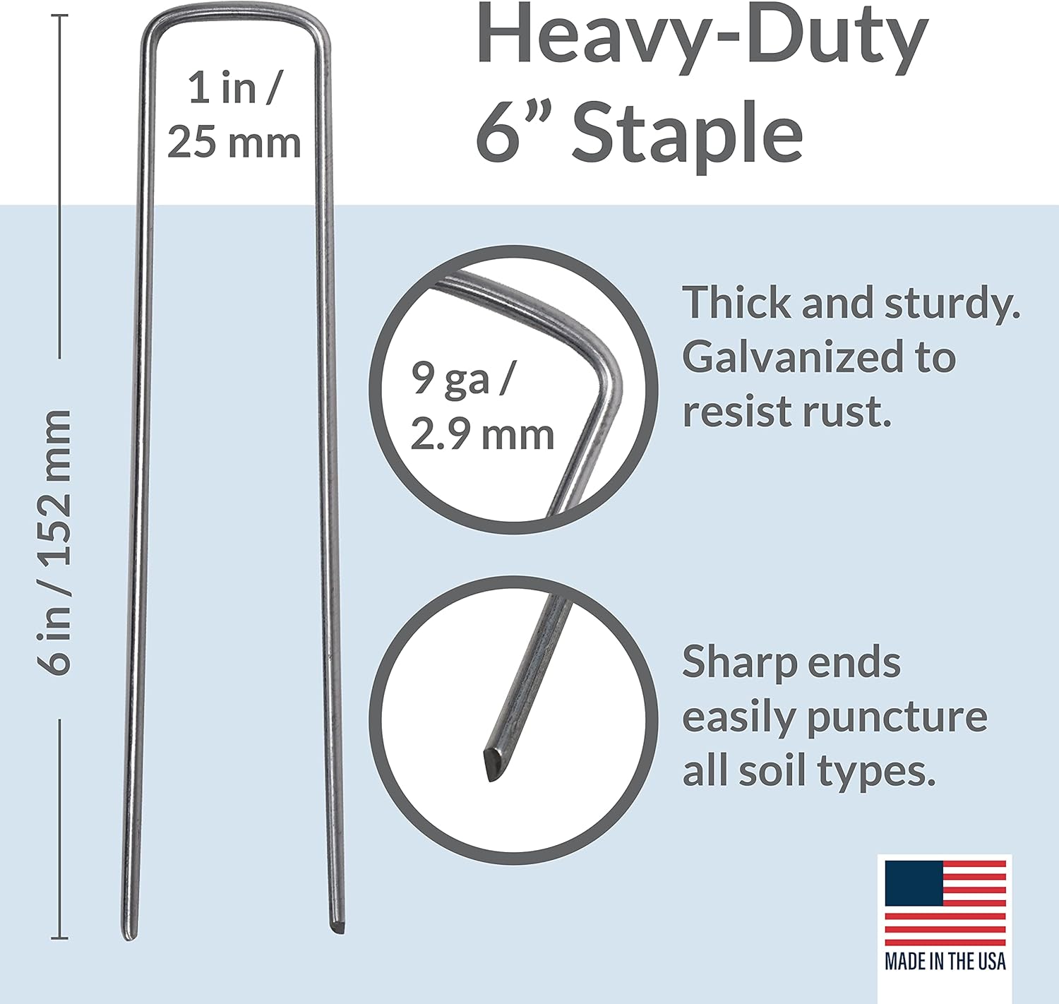 - Secure better 6-inch length 1-inch square top. Sharp ends help penetrate weed block fabric