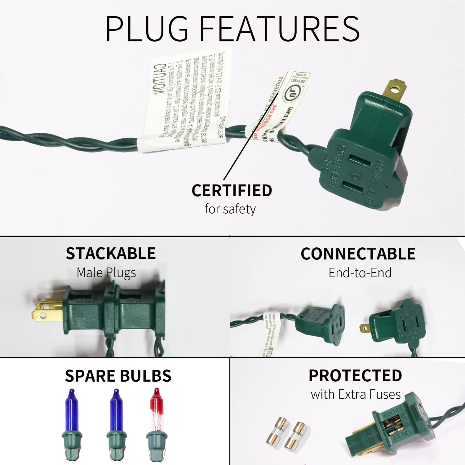 - Safty and Easily: High quality UL certified products ensure the safety of you and your family,Decorate with 100 blue incandescent mini lights with green wire will give a soft festive feel to your Christmas.