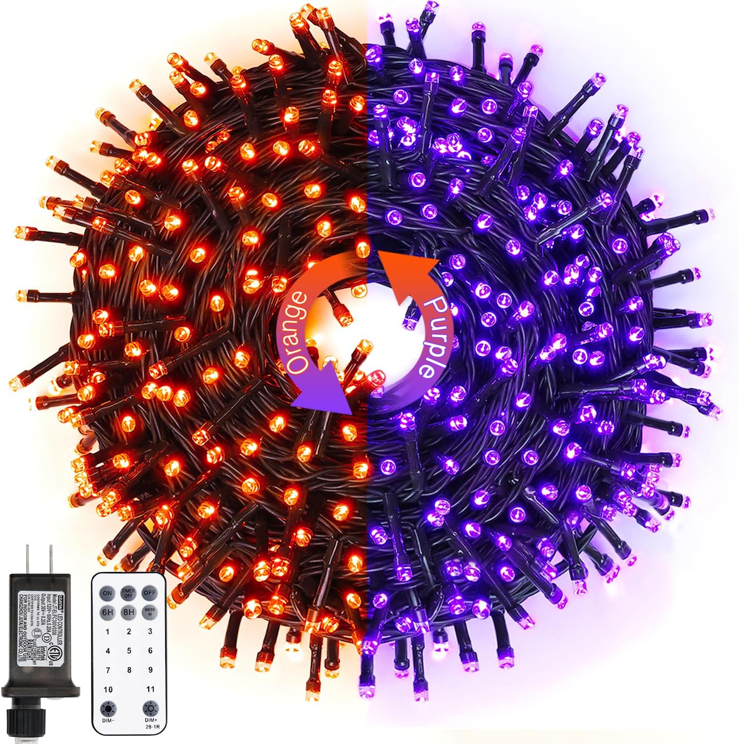 JMEXSUSS 200 LED Orange and Purple Halloween Lights Plug in, 66ft Connectable Color Changing Christmas String Lights with Remote, Outdoor Waterproof Tree Lights for Yard Halloween Decor