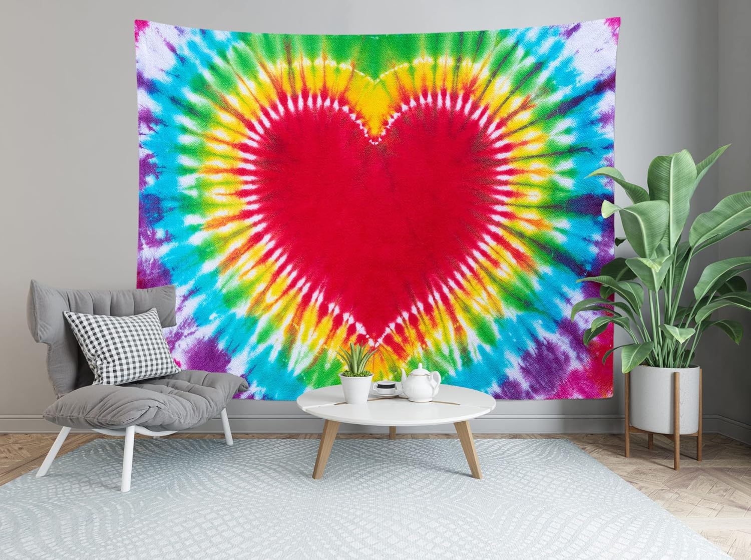 Loccor Colorful Tie Dye Tapestry Rainbow Heart Tie Dye Watercolor Wall Hanging Abstract Hippie Wall Decor LBGT Party Supplies Home Bedroom Living Room Decor W92 x H70 inches