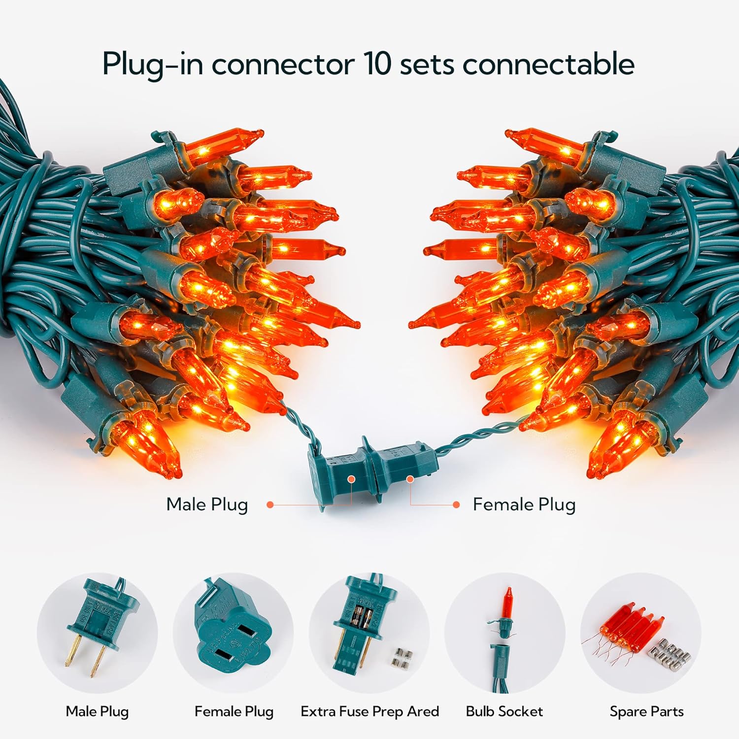 - ๐50 Vibrant Lights with Perfect After Sale :Old-fashion orangen incandescent Halloween light set, creates a warm and festive atmosphere, surely lights up your house, let your home become a fantastic sight to behold in your neighborhood! With green wire, ideal for a tree, bedroom, patio decorations!If you have any reason you don't enjoy it, just send us a message and we will refund 100% or replace your purchase.