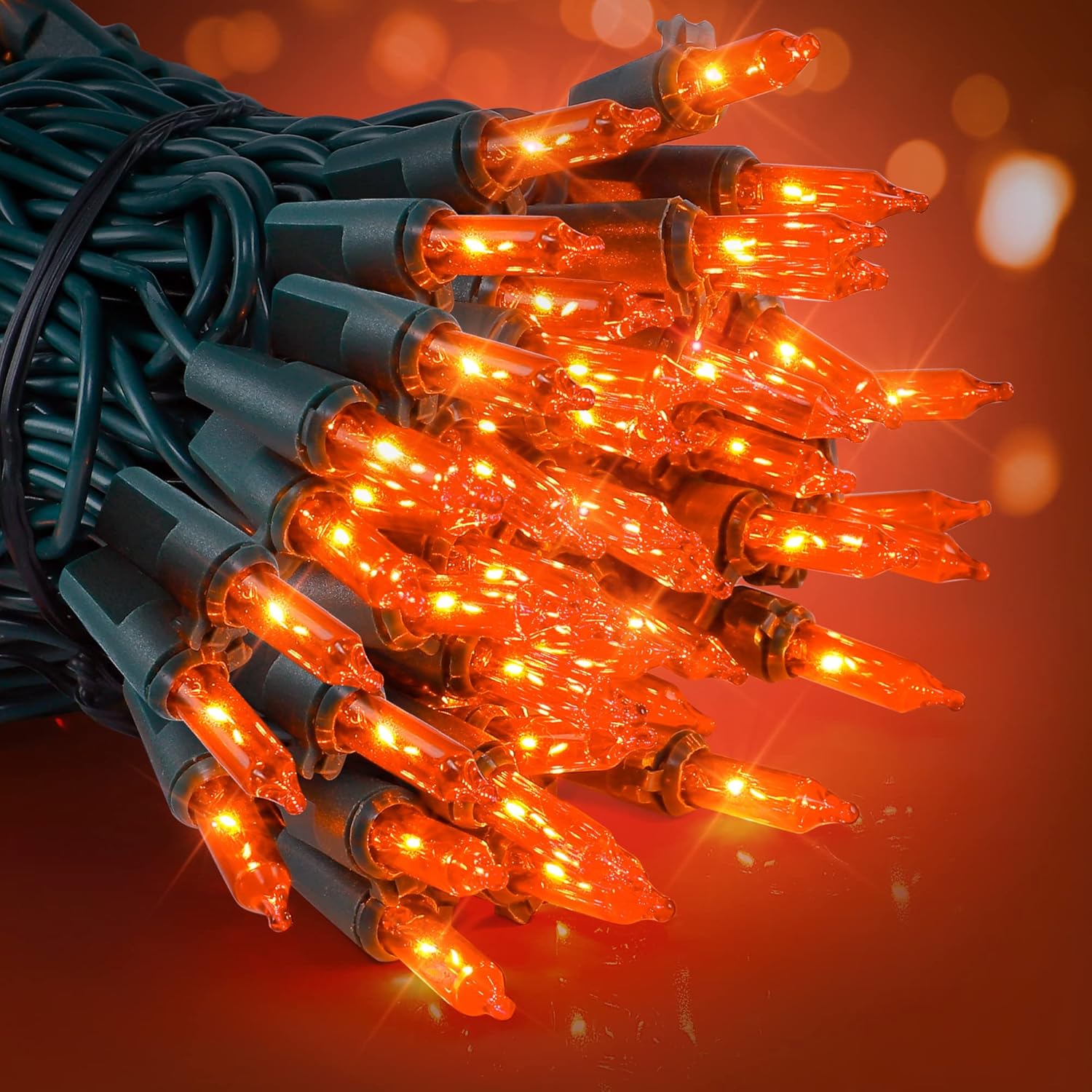 woohaha Outdoor Halloween Lights, 2PACK 13ft 50 Count Incandescent Blubs & Green Wire Mini Lights, 120 V High-Voltage Connectable Light String, for Indoor Patio Garden Tree Party Decoration, Orange