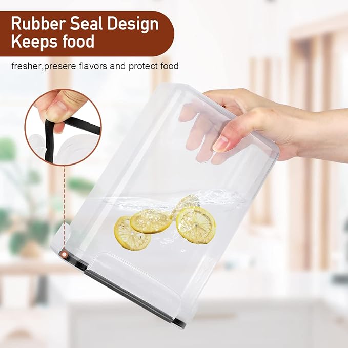 - Keeps Food Fresh:It keeps out moths and bugs,These clear dry food storage containers have locking lids that are perfect for storing flour, sugar, coffee, cereal, pasta, nuts, soup, juice, and any other leftover food item. Stores liquids, solids, and granulated powders