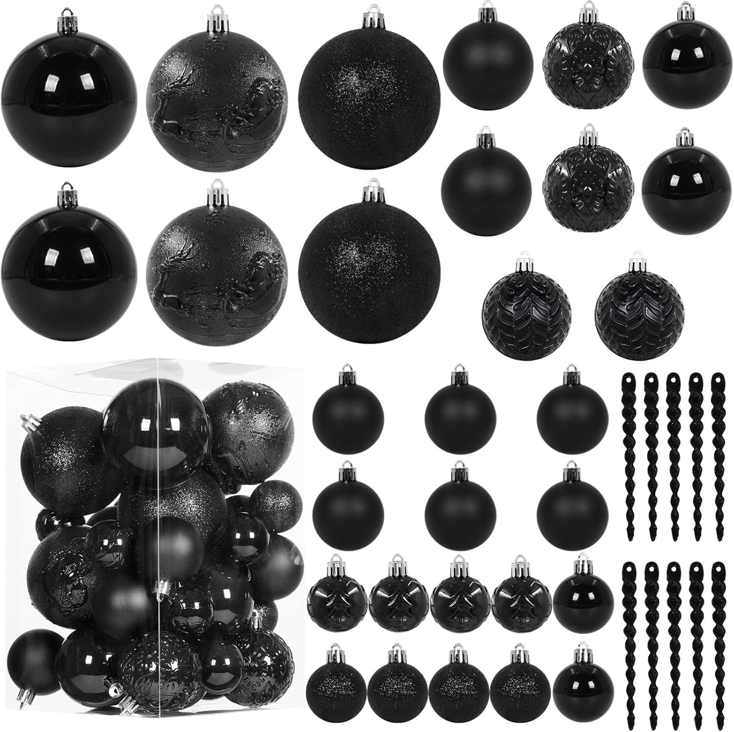 Black Christmas Ball Ornaments for Christmas Trees Decorations - 41 Pieces Halloween Tree Shatterproof Ornaments with Hanging Loop for Holiday and Halloween Decorations