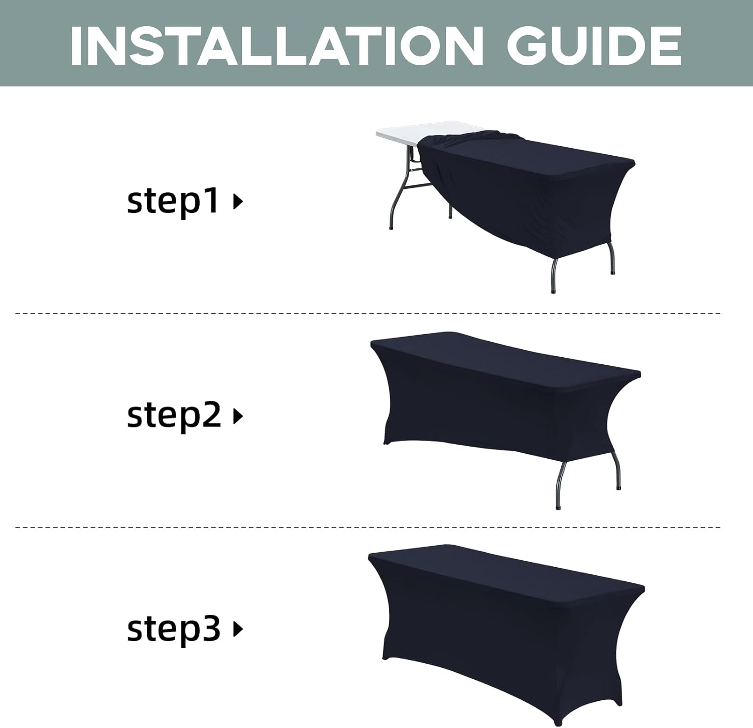 CWK 6FT Waterproof Stretch Spandex Table Cover for Rectangular Tables - Elastic Fitted Tablecloth for Folding Tables,Wrinkle Resistant Table Cloth for Parties, Weddings, Banquets & Events (Navy Blue)