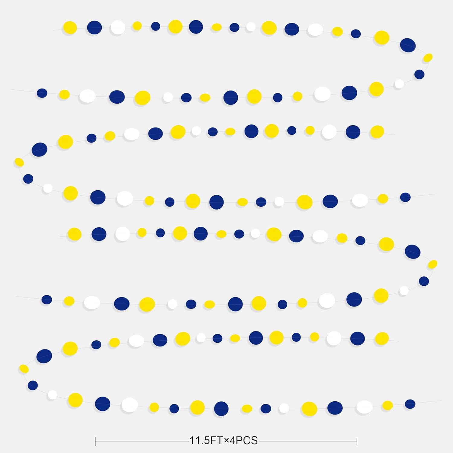 - 🔵PACKAGE CONTAINS- 4 set of royal blue yellow white circle dot party garland banner,Each string is 11.5 feet/3.5 meters, Total is 14 meters/46 feet.