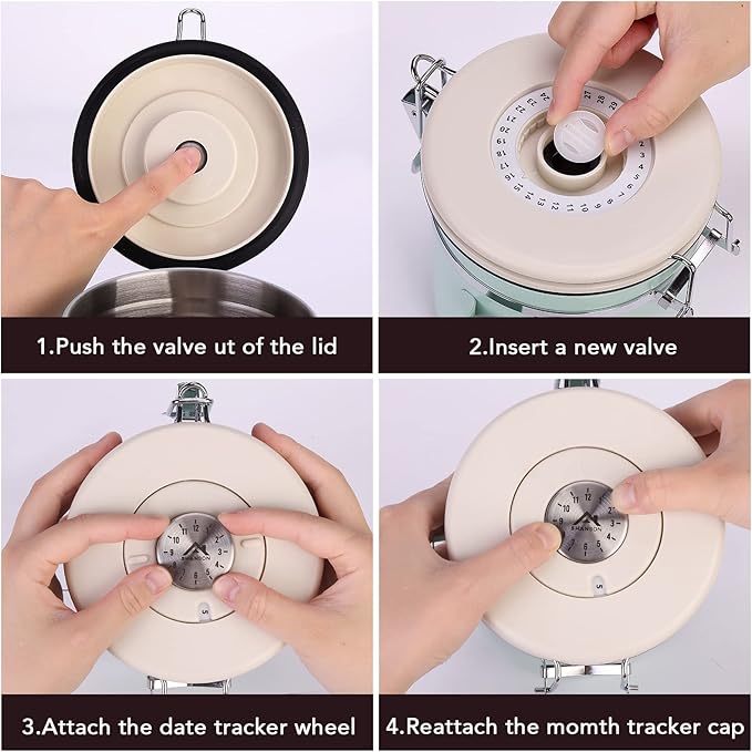 - 【TWO EXHAUST MODES】The canister features a CO₂ valve system and a silicone seal to lock in freshness and keep out moisture and air. A silicone gasket around the edge of the lid ensures an airtight seal when the lid is closed. Storing your coffee beans in this well-designed canister helps extend their freshness and ensures that every cup, even weeks later, tastes as good as the first.