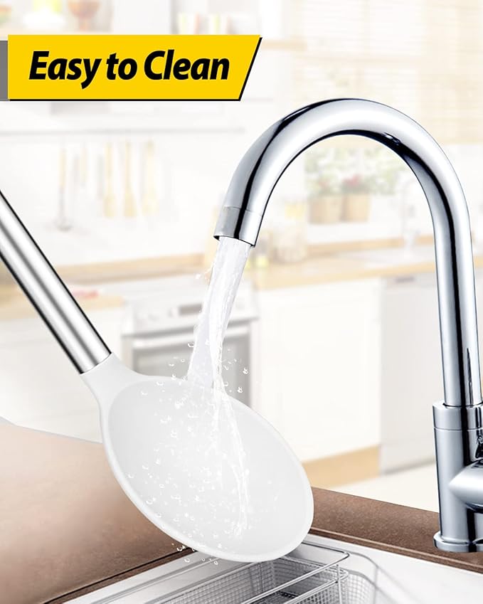 - More Safe and Healthy : Our silicone spoons are made of food-grade silicone, free of BPA;Even at high temperatures, there is no need to worry about melting or deforming;And the soft silicone head won't scratch the coating, it can better protect your pot