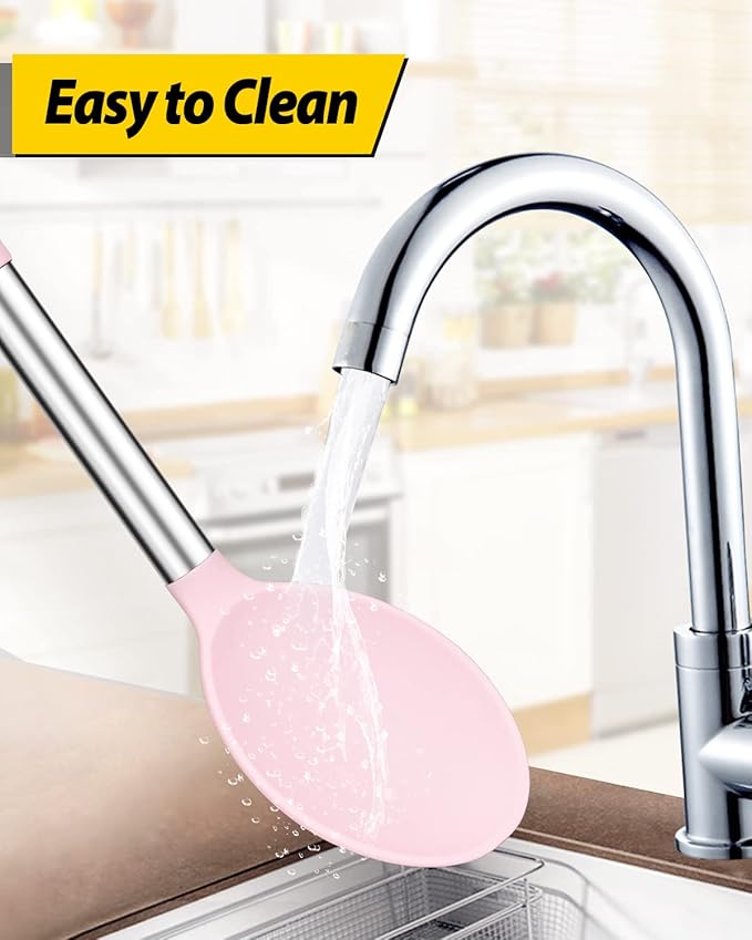 - More Safe and Healthy : Our silicone spoons are made of food-grade silicone, free of BPA;Even at high temperatures, there is no need to worry about melting or deforming;And the soft silicone head won't scratch the coating, it can better protect your pot