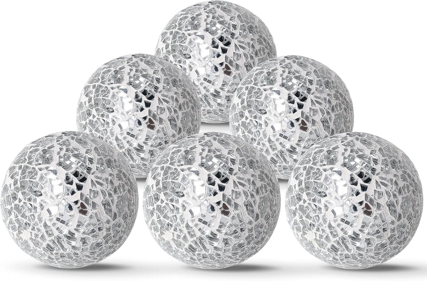 - SIZE and PACKAGE: 6Pcs 6cm/2.4inches silver Mosaic Decorative Balls.