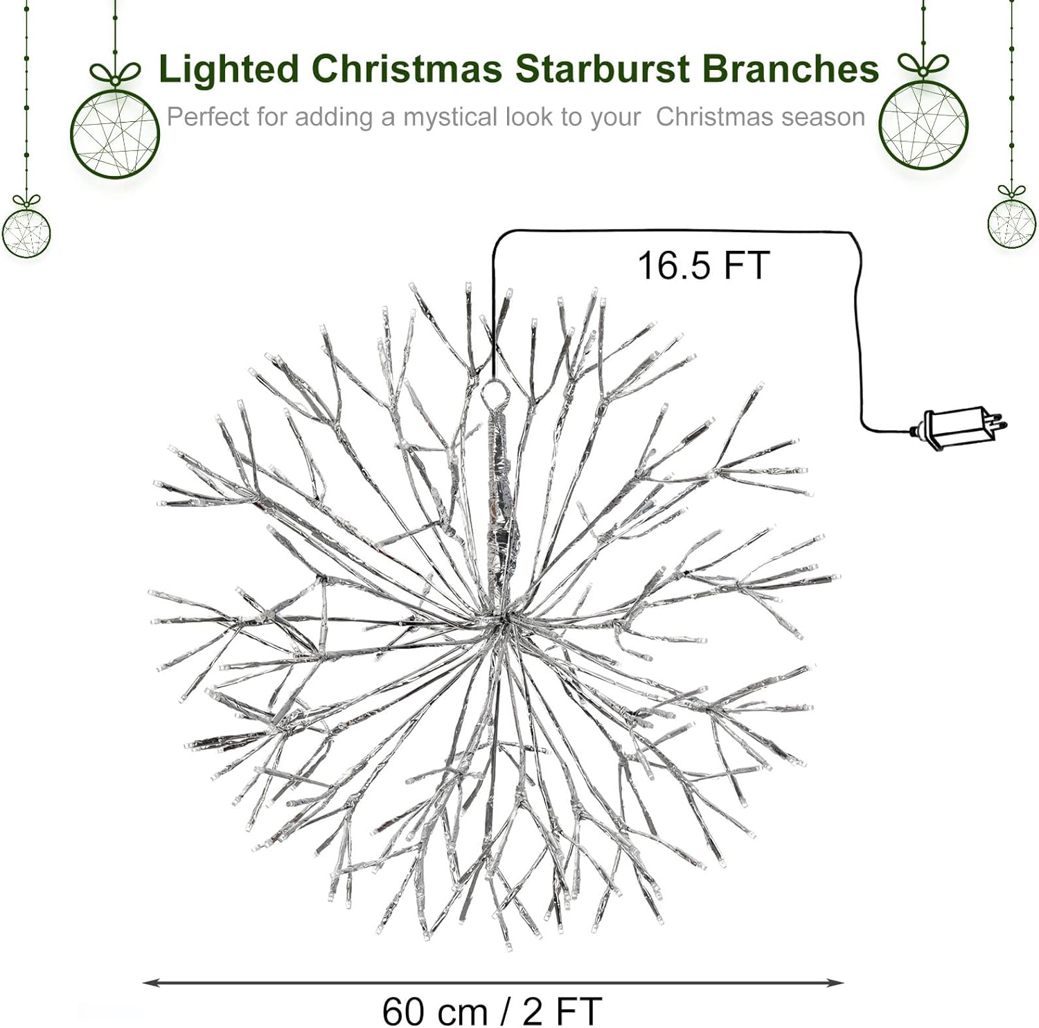 - 【Dimension】Upgrade your holiday decor with LEWIS&WAYNE's Hanging Starburst Lighted Branches! 24 inches diameter is perfect for adding a mystical look to your space over the Christmas season. 16.5 ft extension wire allows for easy connection to socket.