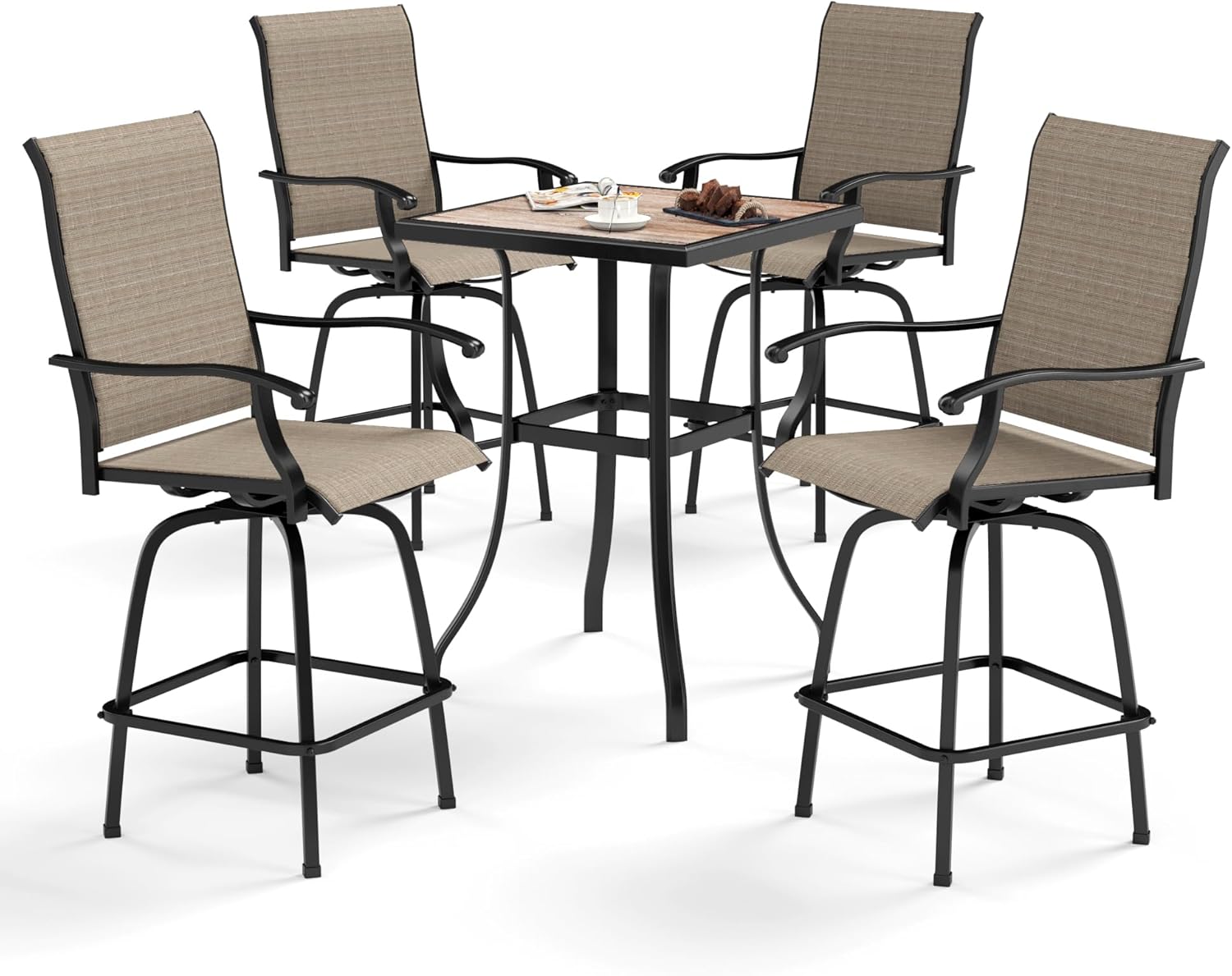 - 【Barheight Patio Table and Chairs】Combines ergonomic high back design with seamless swivel functionality, this bar set provides a stylish and elevated seating option that adds flair to any space. Patio bar table features elegant woodlike table top