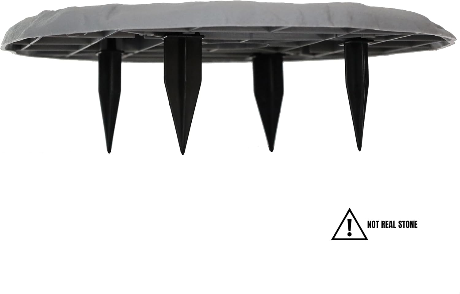 - MADE OF RESIN (PLASTIC) – Both the stepping stones and ground stakes are made of Resin (Plastic). Resin is a more durable type of plastic that is made for outdoor use.