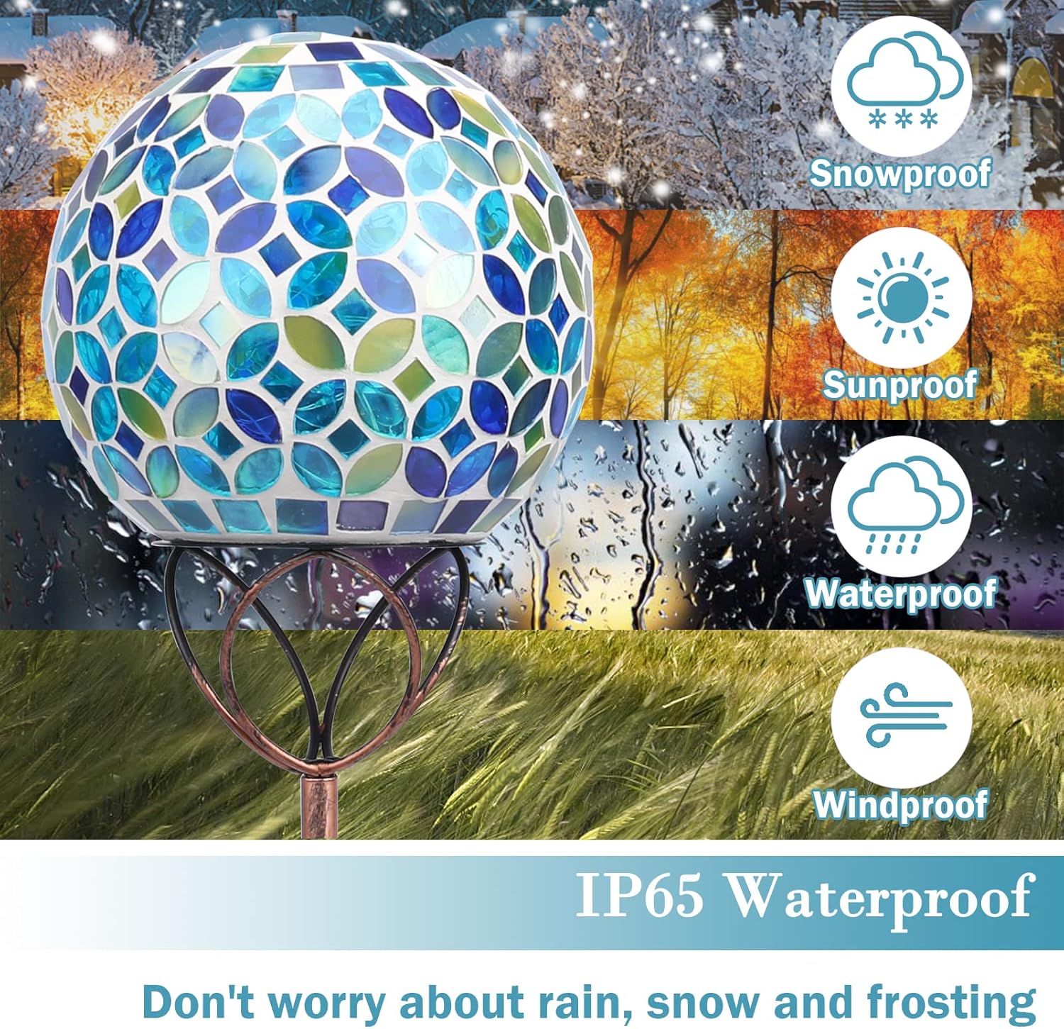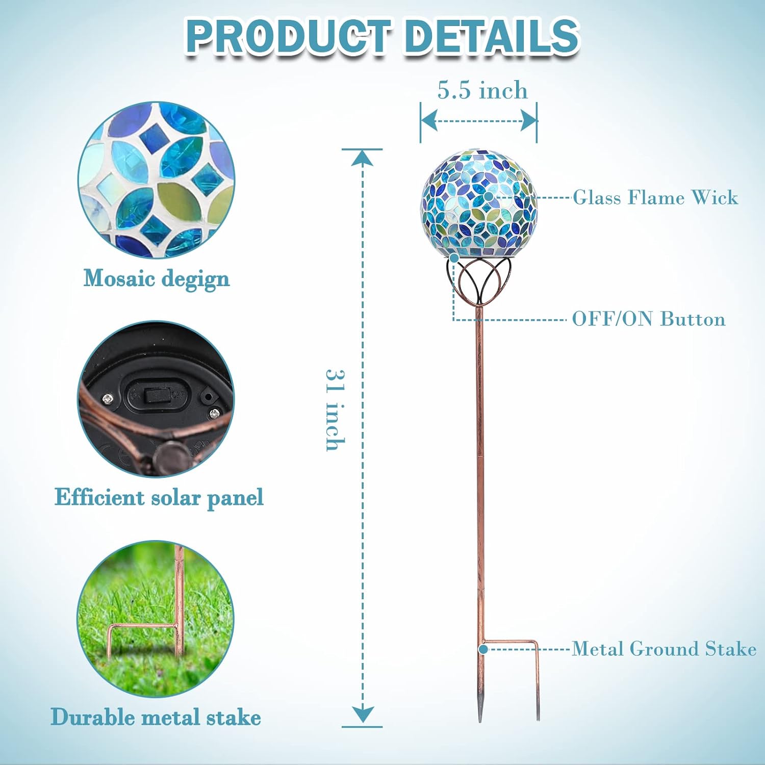 Solar Lights Outdoor Decorative, Solar Gazing Ball Mosaic Garden Stakes Decorative Waterproof Outdoor Lights for Pathway Yard Lawn Decoration (Blue)