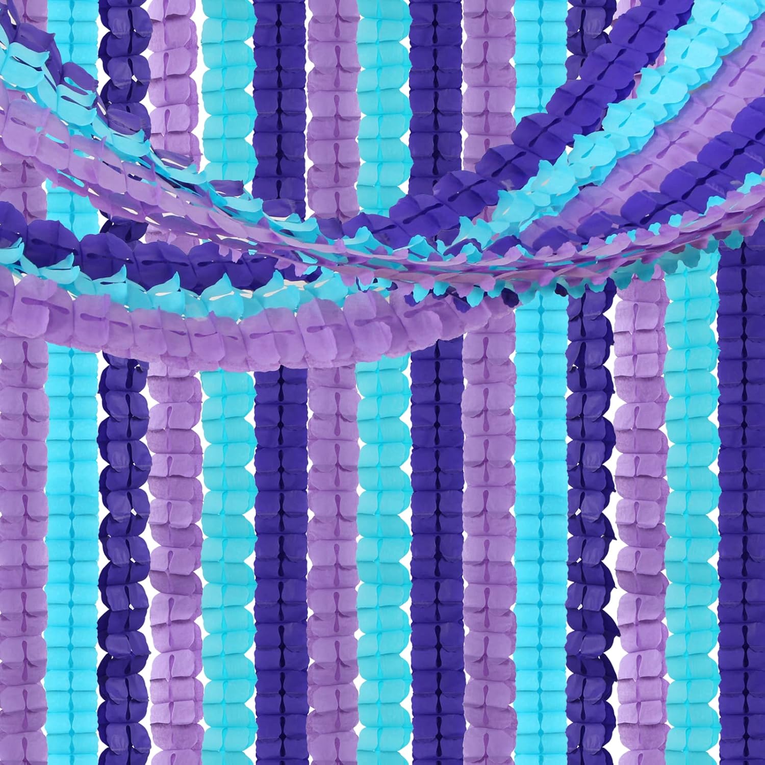 Purple-Blue Mermaid Party-Decorations Garland Streamers - 12pcs Girls Birthday Baby Shower 4-Leaf Clover Paper Streamer,Little Mermaid Theme Under The Sea Backdrop Banners Decor Ouruola
