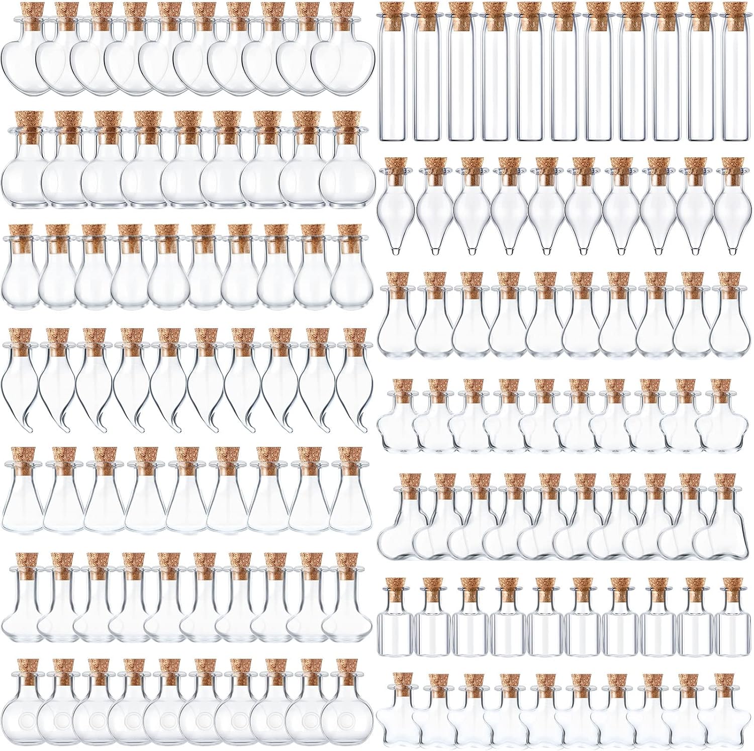 - Sufficient and Diverse: there are 140 pieces of small glass bottles with cork, in 14 various shaped styles, such as star, inclined heart, chili, water drop, square, single pointed, heart, sphere, flask, 10 pieces for each style; The abundant quantity and attractive styles can meet your various demands; Please note that Individual breakages may also occur during the long transit, even if protective measures have been taken
