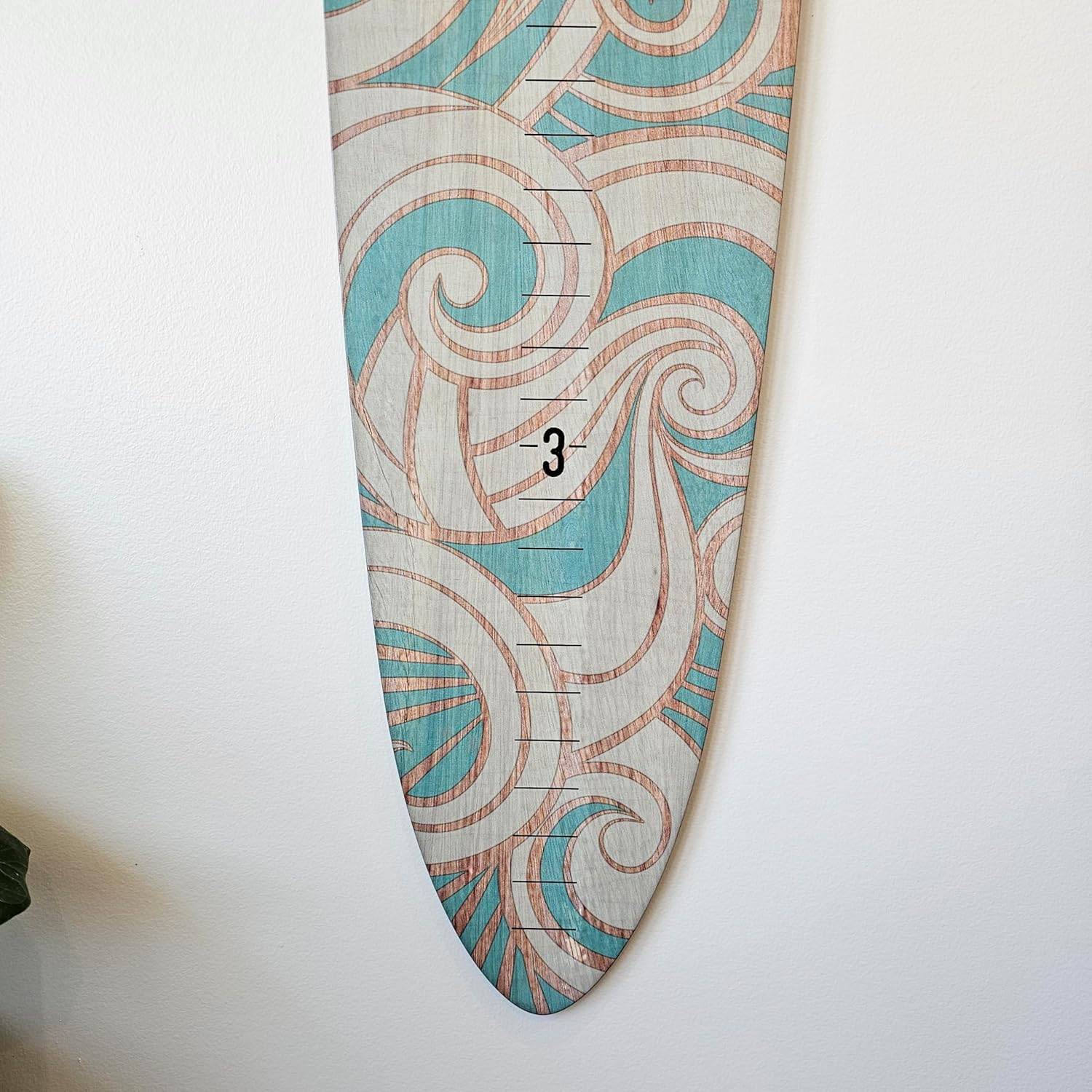 Wooden Surfboard Wall Decor Growth Chart - Surf Board Decor for Kids Room, Wooden Growth Chart for Wall, Surfboard Wall Art, Surfboards for Decoration - Teal Wave (9.5"x 45")